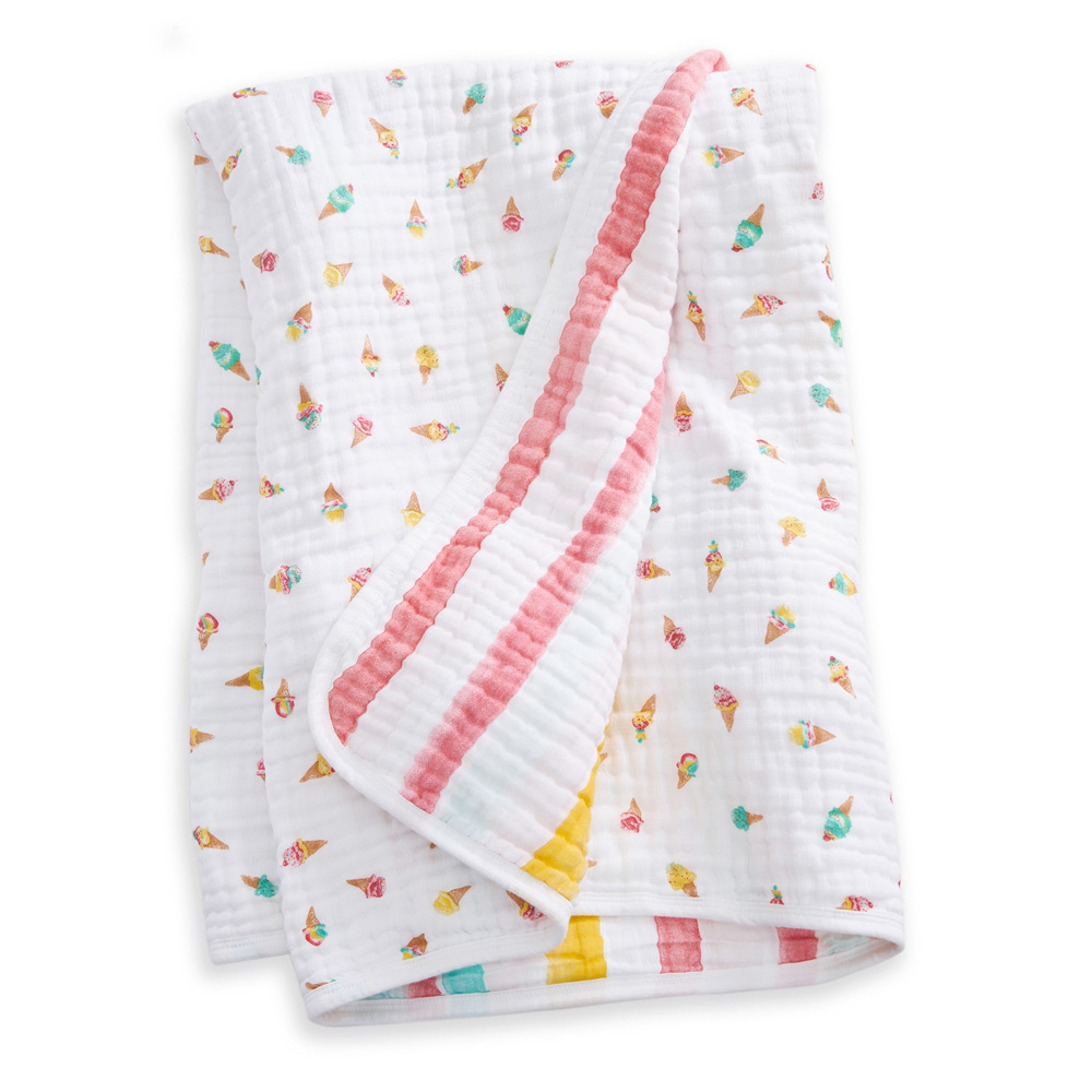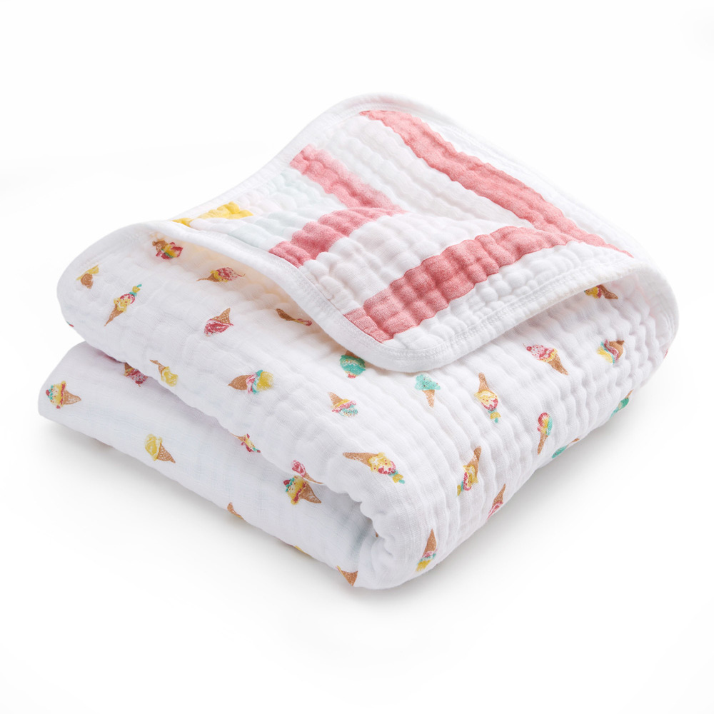 コットンモスリン素材でつくられたダブルガーゼ4層構造のブランケットです。