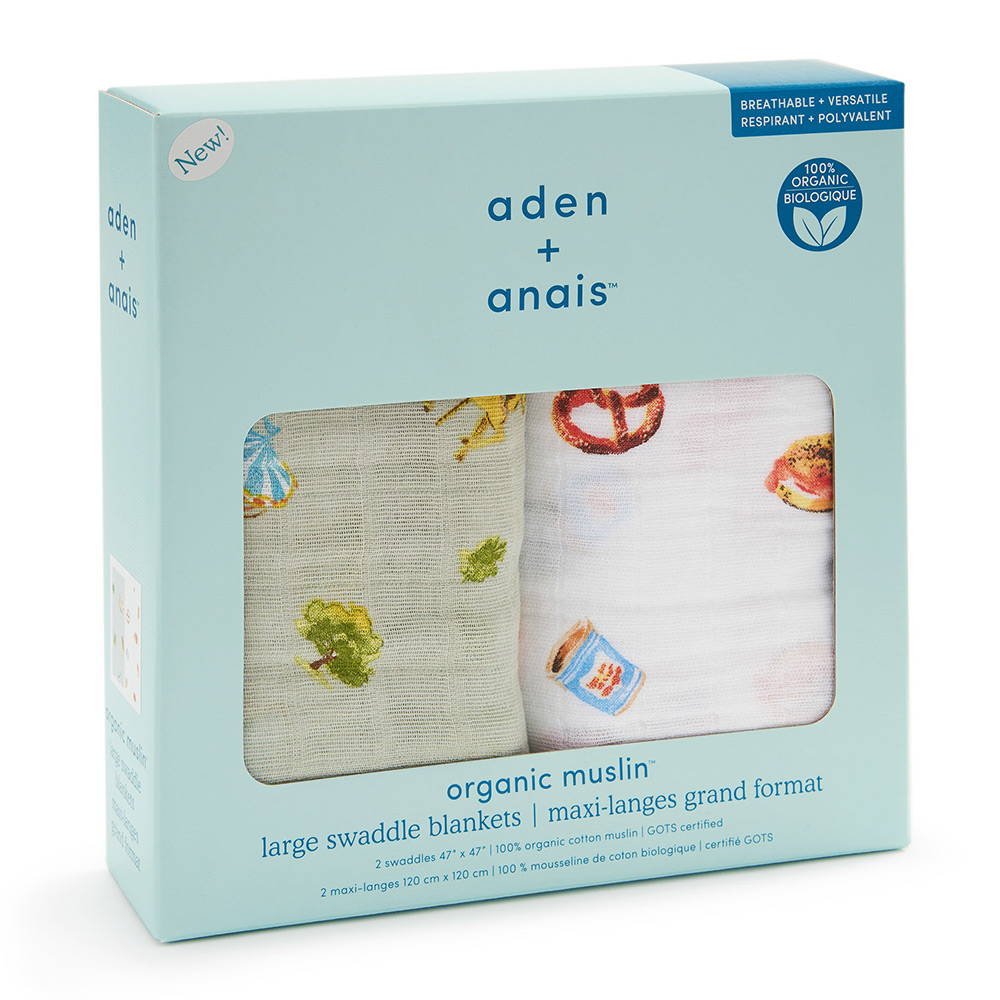 洗い替えにも便利な2枚セットで、毎日の育児に欠かせないアイテムです。 コットンモスリンは、伝統的におくるみとして愛用されてきた通気の良い素材。細やかな織りが特徴で、ムレを防ぎながら、赤ちゃんを快適にサポートします。 スワドルを使って赤ちゃんを優しくしっかり包むことで、まるでママのおなかの中にいるような安心感を与えられるといわれています。 エイデンアンドアネイのスワドルは、ダブルガーゼの柔らかさが魅力。赤ちゃんのお肌に優しく、使うたびに心地よく。GOTSとは オーガニック繊維製品を製造加工するための国際基準です。原料から最終製品まで、製造の全ての工程において環境的・社会的に配慮した方法で製品をつくるための基準です。 環境保全、自然に配慮した製品への注目が高まる中で、aden + anais(エイデンアンドアネイ)は未来の子供たちのためにできることの一歩としてオーガニックコットン素材のコレクションを提案します。 おくるみとしてだけでなく、ベビーカーの日よけや授乳ケープ、おむつ替えシート、プレイマット、吐き戻しの汚れカバーとしても活躍します。 大判サイズなので多用途に使え、外出時もコンパクトにたたんで持ち運べる便利さが魅力です。