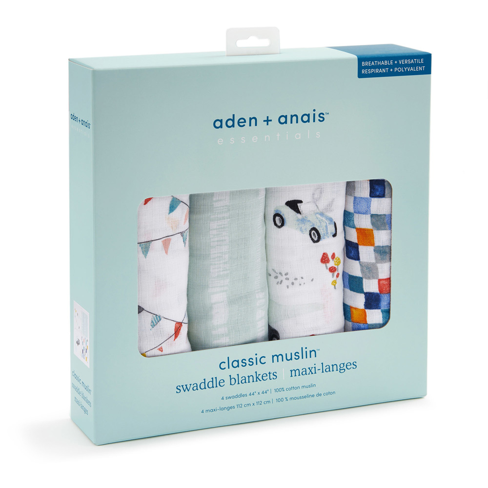 aden + anais essentials(エイデンアンドアネイエッセンシャルズ)は、大人気のコットンモスリンを使ったスワドルをはじめ、ビブ、ブランケット、スリーピングバッグ(スリーパー)などの定番商品を「毎日たくさん使って欲しい」という想いから誕生したエイデンアンドアネイの姉妹ブランド。 洗い替えや用途別に使い分けられる4枚セットで、毎日の育児に欠かせないアイテムです。 コットンモスリンは、伝統的におくるみとして愛用されてきた通気の良い素材。細やかな織りが特徴で、ムレを防ぎながら、赤ちゃんを快適にサポートします。 スワドルを使って赤ちゃんを優しくしっかり包むことで、まるでママのおなかの中にいるような安心感を与えられるといわれています。 エイデンアンドアネイのスワドルは、ダブルガーゼの柔らかさが魅力。赤ちゃんのお肌に優しく、使うたびに心地よく。 おくるみとしてだけでなく、ベビーカーの日よけや授乳ケープ、おむつ替えシート、プレイマット、吐き戻しの汚れカバーとしても活躍します。 大判サイズなので多用途に使え、外出時もコンパクトにたたんで持ち運べる便利さが魅力です。