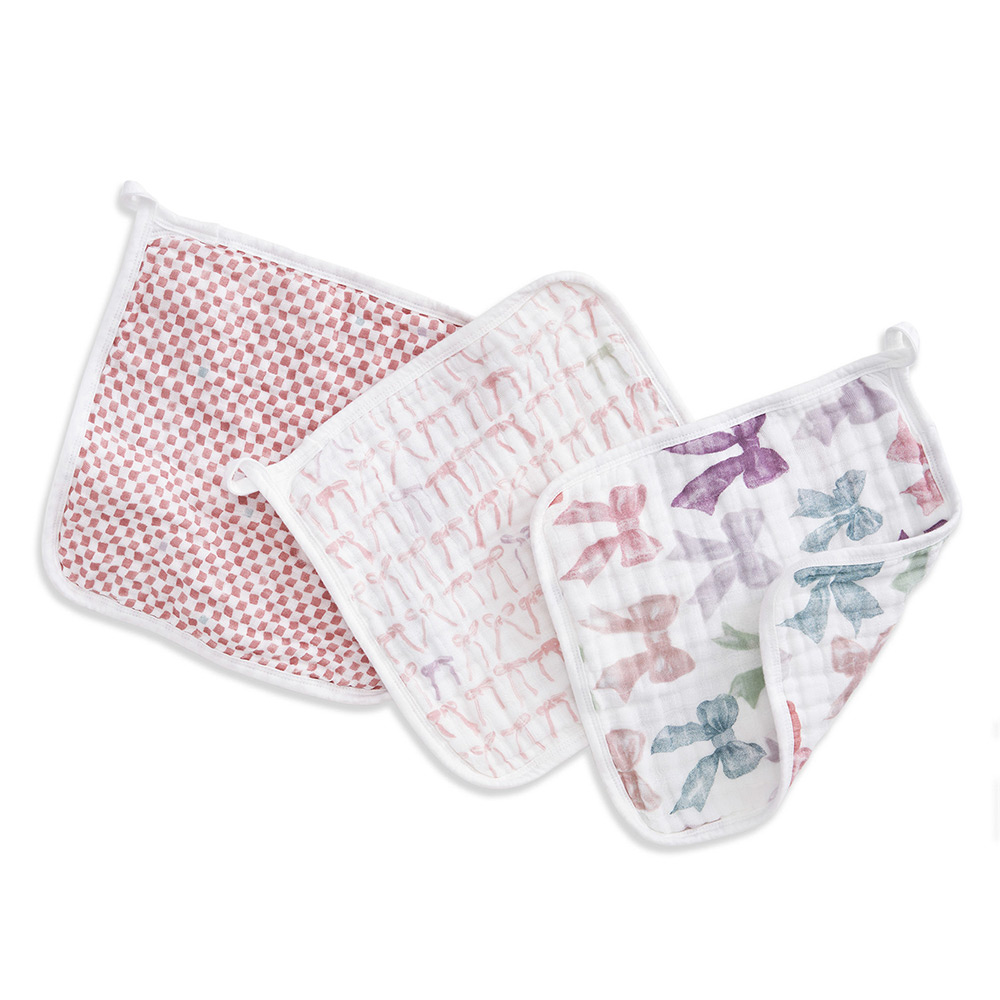 赤ちゃんの肌を守る「優しさ」を、大人のバッグにも忍ばせて。素肌が喜ぶ、贅沢3重ガーゼのガーゼハンカチ。エイデンアンドアネイのウォッシュクロスは、世界中のベビーに愛されるベストセラー。その理由は、「赤ちゃんの敏感な肌を守るクオリティ」だからこそ実現した、極上の※肌触りと吸水性にあります。出産準備の「沐浴ガーゼ」としてはもちろん、大人の女性の「タオルハンカチ」としても。一度使うと手放せない、ふんわり柔らかな一枚です。ForBaby:赤ちゃんの「安心」として沐浴から保育園まで。ママの必須アイテム。デリケートな肌を洗う「ボディタオル」や、お口拭き・よだれ拭きとして。一般的なガーゼより厚手(3枚重ね)でへたりにくく、吸水性があります。ループが付いているので、保育園や幼稚園の「手拭きタオル」としても、入園準備の定番品です。ForYou:大人の「ハンカチ」としてバッグに一枚。汗ばむ季節も、手洗い後も心地よく。「パイル地のタオルはかさばるけれど、薄いハンカチでは頼りない」そんなオトナに選ばれているのが、このウォッシュクロスです。吸水力:3枚重ねのモスリンコットンが、手洗いの水分や汗を吸収。肌にそっと当てるだけで拭き取れます。清潔:通気性が良いため、蒸れにくく、すぐに乾きます。どこでもフック:ループ付きなので、オフィスの洗面所やジム、旅行先のフックに掛けて使えます。自分専用の手拭きとして衛生的です。SecretTip:実は「キッチン」でも実力派。お皿拭きやグラス磨きに。知る人ぞ知る活用術。ギフトで余った時はぜひキッチンで使ってみてください。「プロ級のキッチンクロス」に早変わりします。繊維の毛羽立ち(ケバ)が少ないため、グラスや食器をピカピカに拭き上げることが可能。洗った食器の水切りマットや、台拭きとしても非常に優秀です。GOTSとは オーガニック繊維製品を製造加工するための国際基準です。※ブランドにおいて