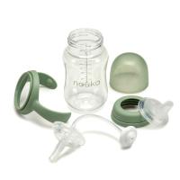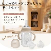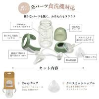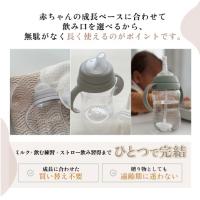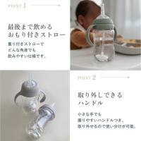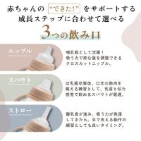 大切なベビーに贈りたい、品のあるナチュラルな専用BOX仕様。ニップル+スパウト+ストロー、3つの飲み口が全部セットに。3通りの使い方で長く活躍。最後まで飲めるおもり付きストロー、取り外しできるハンドル、ストロー・スパウト共にスリット入りで漏れにくい設計。
