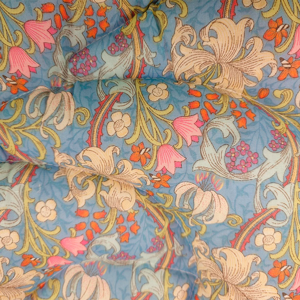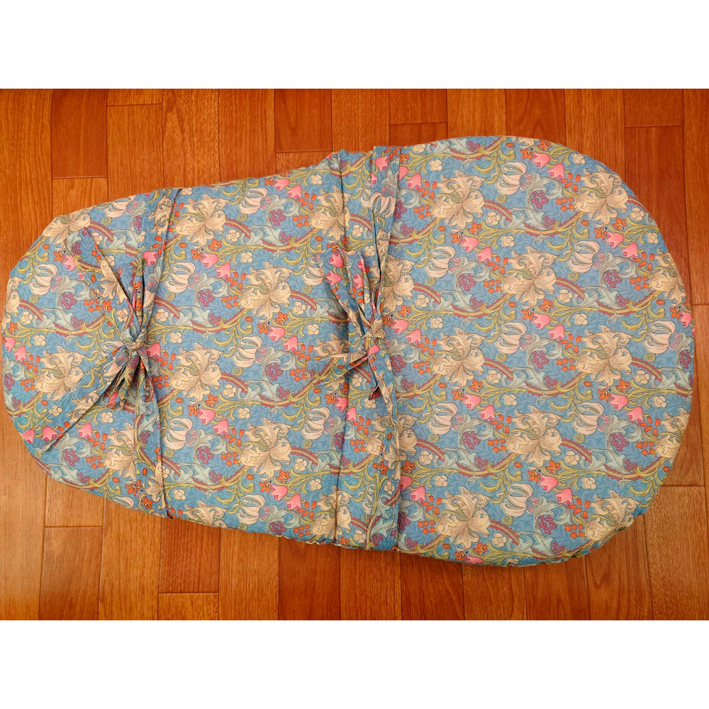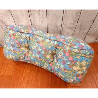 落ち着いたブルー色の綿生地キルト2点セットです。背付き椅子シートは背と座部分に紐が付いているので椅子に固定できます。腰当は低反発仕様で体に程よくフィットします。腰当ての他に枕としても使用でき、便利にお使いいただけます。