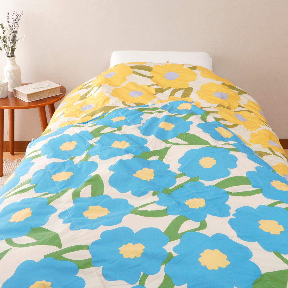 スペインのクリエーター、シビラが自然をモチーフにデザインした<カラダス>柄の、ダウン85%の羽毛肌掛ふとん
