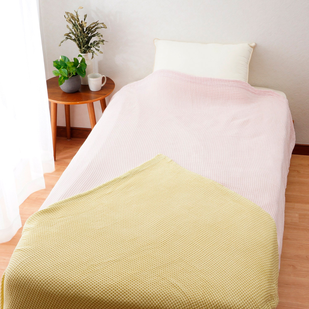 ワッフル生地の肌触りのやわらかなふんわり軽いケット