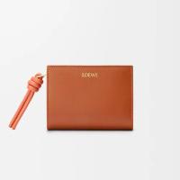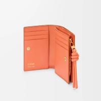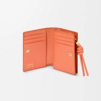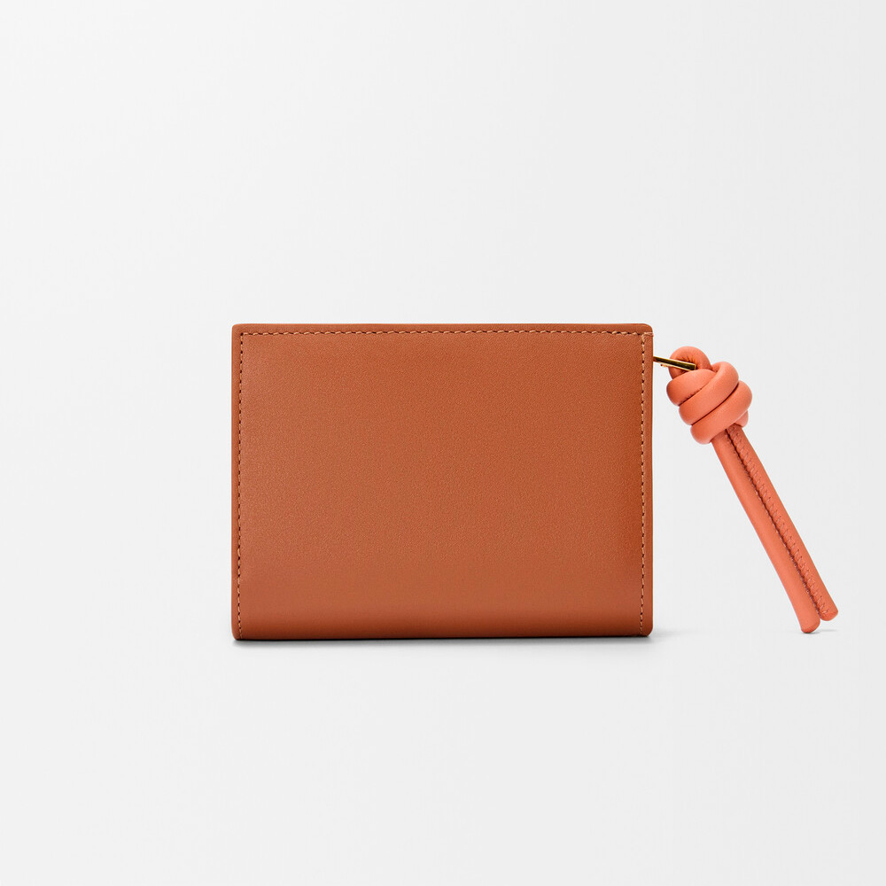 シャイニーナパカーフスキンを採用したコンパクトウォレット。コントラストカラーのノットのジップ引き手付き。