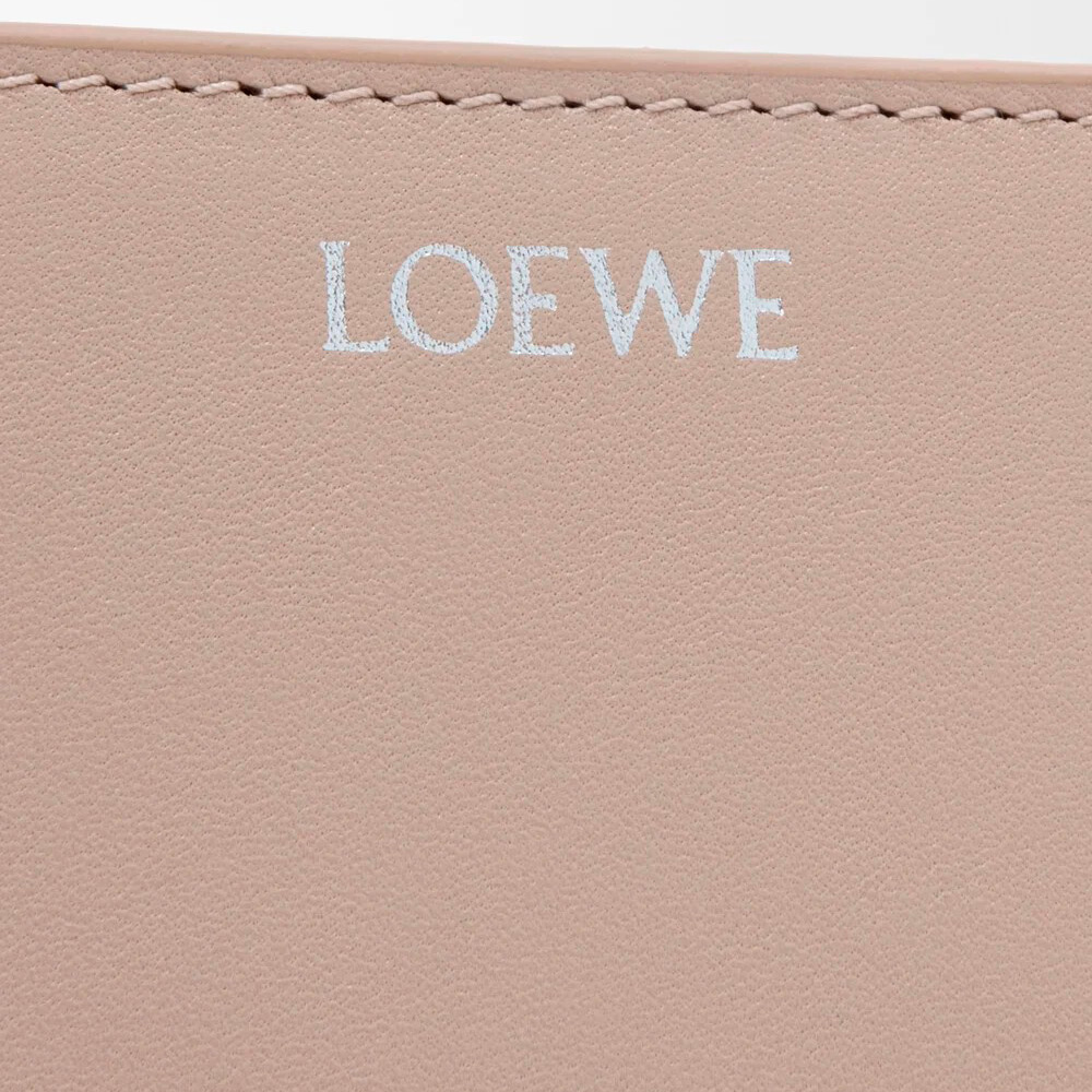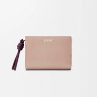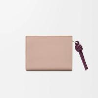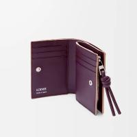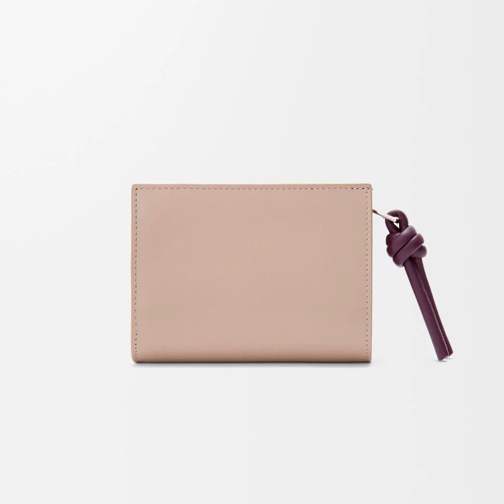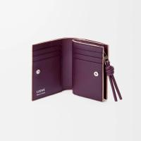 シャイニーナパカーフスキンを採用したコンパクトウォレット。コントラストカラーのノットのジップ引き手付き。