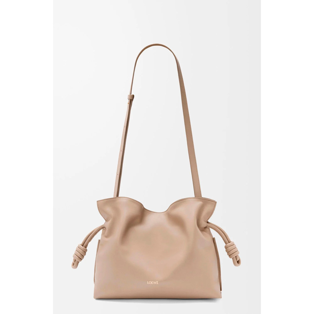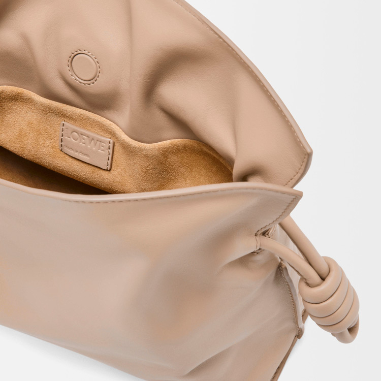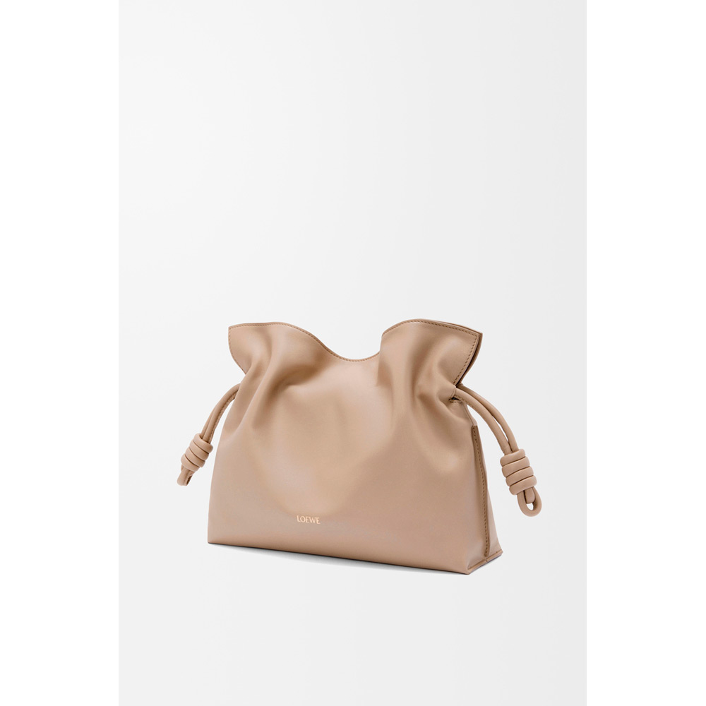 ソフトでしなやかなフラメンコクラッチ。シグネチャーであるコイル状の結び目で仕上げられたドローストリングで開閉することができます。本製品はナパカーフスキンを採用したミディアムサイズです。