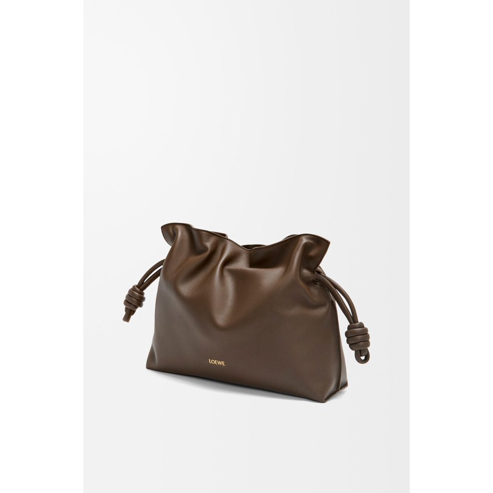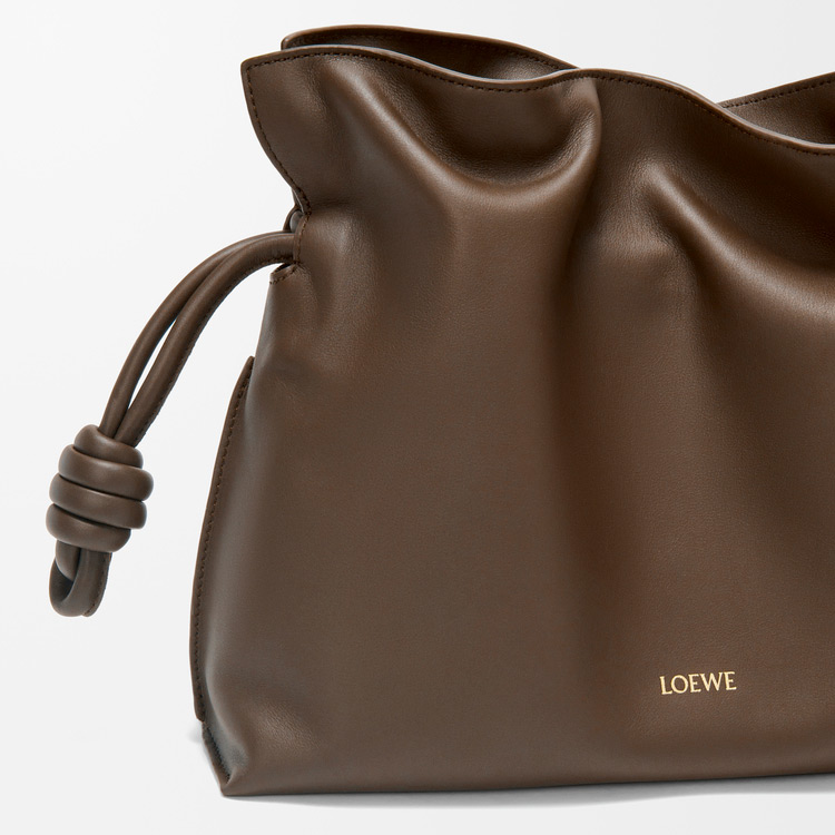ソフトでしなやかなフラメンコクラッチ。シグネチャーであるコイル状の結び目で仕上げられたドローストリングで開閉することができます。本製品はナパカーフスキンを採用したミディアムサイズです。