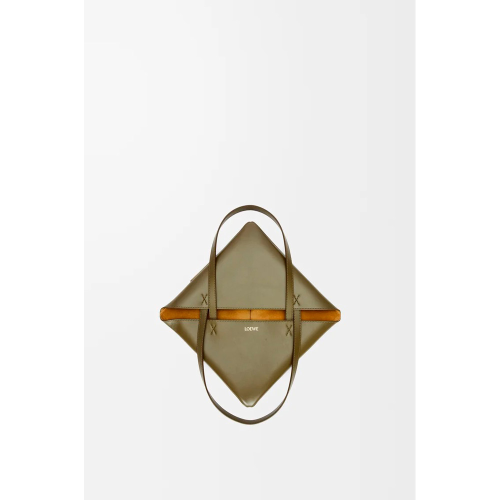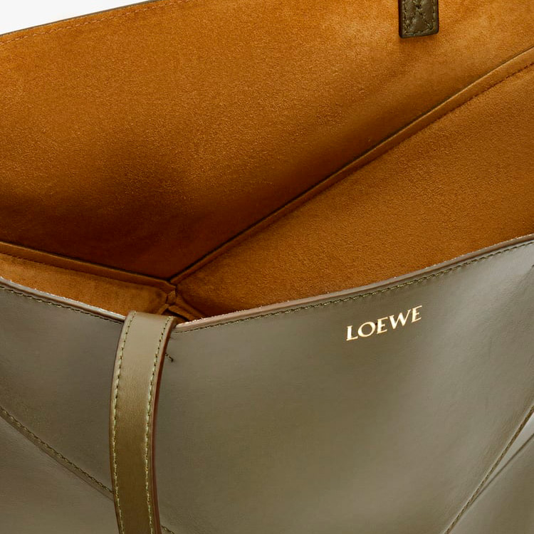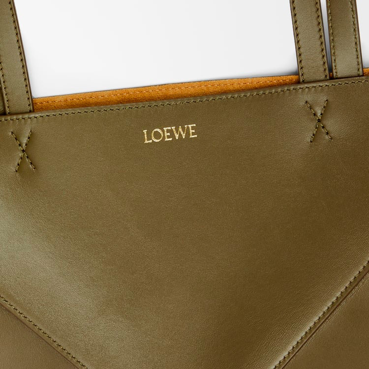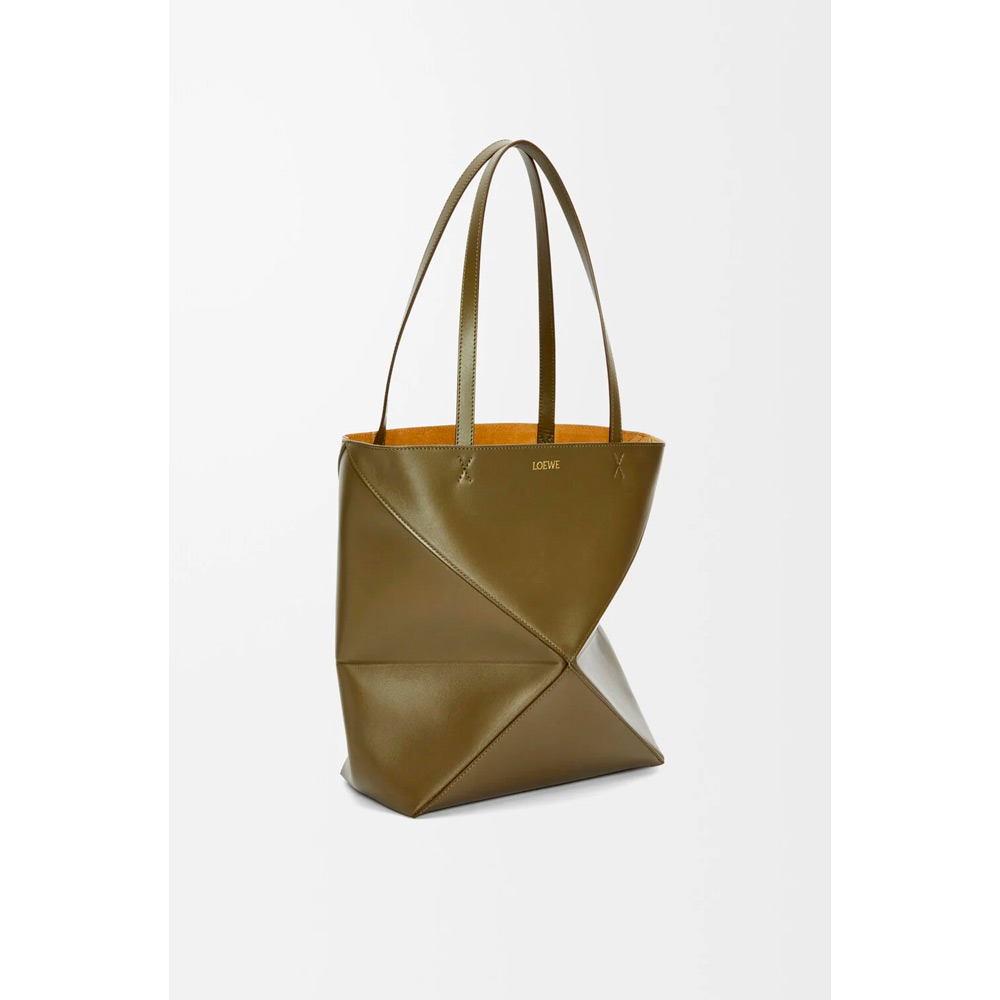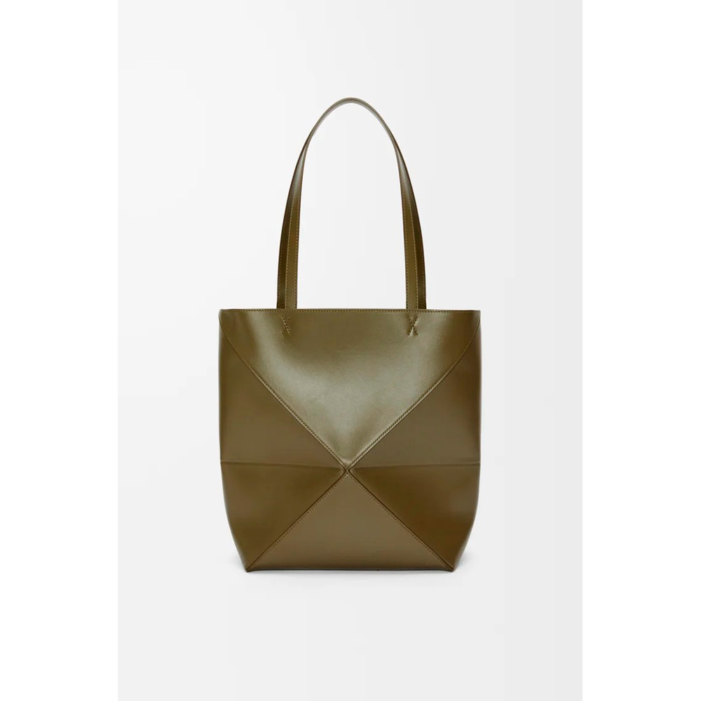 パズルバッグの幾何学的なラインを取り入れながら、構築的に再創造されたライトウェイトのパズルフォルド。平らに折りたたむことができ、旅行用としても最適なトートバッグです。このミディアムバージョンはシャイニーカーフスキンを採用しています。