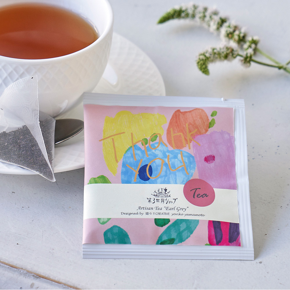 <e MY DEAR> スタイリッシュなカードタイプのカタログギフト。暮らしを彩るテーブルウェアや、気持ち華やぐビューティーアイテム、心ときめくスウィーツなど。美しく、豊かな時間を過ごすためのアイテムを豊富に集めました。 <Artisan Tea Selection> ティーバッグタイプのアールグレイティーとブラックティーの2種類の紅茶が楽しめるギフトセット。インド産オーガニックの茶葉を使用。パッケージは、様々な障がいを持つ人が、好きなこと・得意なことで活躍する福祉施設/アトリエ 嬉々 CREATIVE(キキ・クリエイティブ)の個性的なアーティストたちが彩ってくれています。アールグレイティーは、ベルガモット精油で香りをつけた、上品で華やかな香りです。ブラックティーは、口当たりが優しくまろやかで、渋みが少なめの飽きのこないタイプの紅茶です。ティーバッグには生分解フィルム(植物の澱粉が原料、土に還ります)を使用。「Artisan」とは英語で「職人」という意味です。手間を惜しまず「おいしさ」「感動」を届けてくれる生産者、世界に1つしかないデザインを生み出す嬉々 CREATIVEのアーティスト、彼らの職人技に敬意をこめて名付けたシリーズです。
