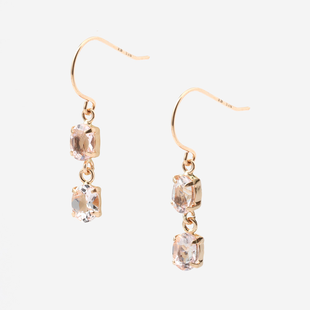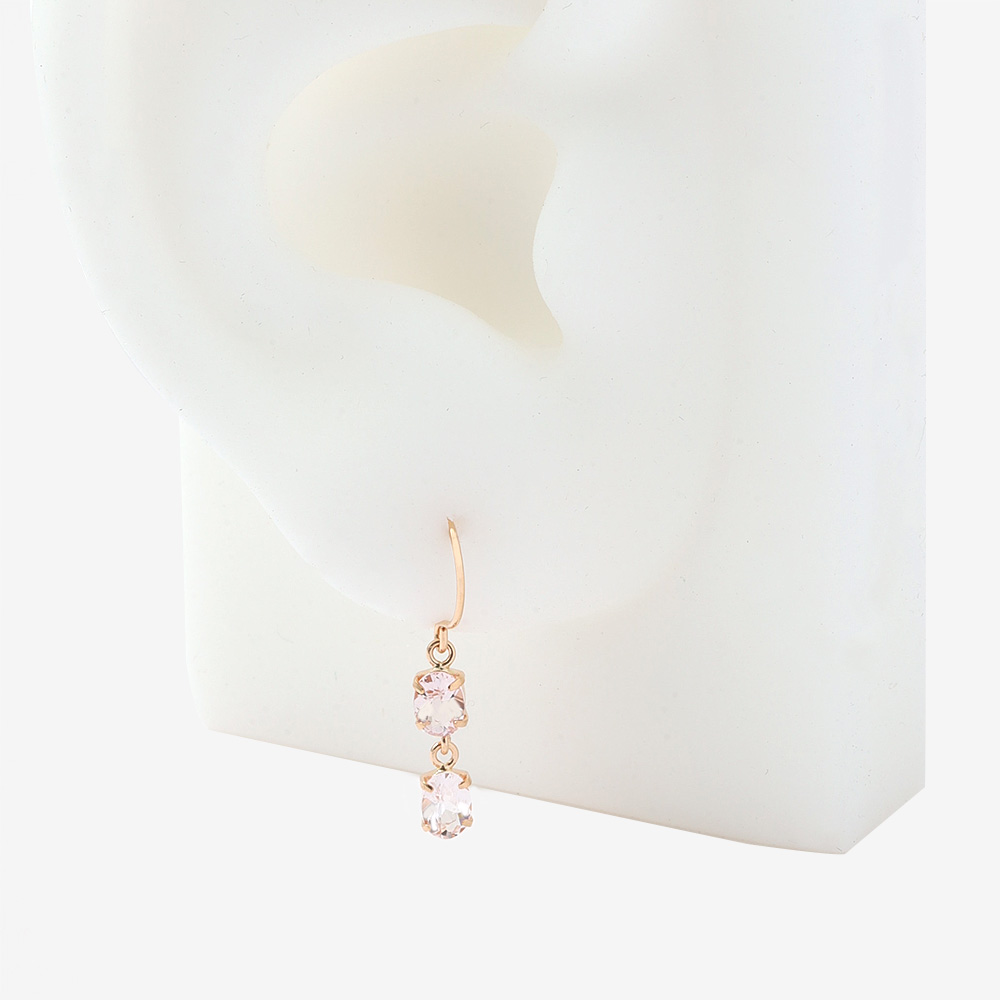 淡いピンクのモルガナイトが耳元でスイングする美しいピアス