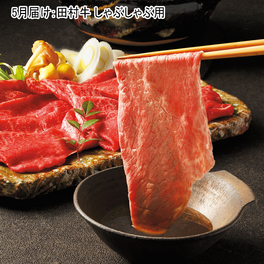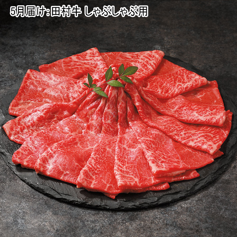 【6カ月連続でお届けいたします】代々受け継がれてきた確かな「目利きの技術」で吟味しながら、黒毛和牛の雌牛のみを一頭買いで仕入れを行う〈人形町今半〉がお届けするお肉の定期便【5月】「田村牛」しゃぶしゃぶ用【6月】黒毛和牛のもも肉を使用したローストビーフ【7月】きめ細やかな肉質のロース肉。サーロインステーキ【8月】サシが少ない強い旨味のランプや、やわらかく肉の旨味を楽しめるイチボ、らんぼそなど希少部位の食べ比べができるカットステーキ詰合せ【9月】貴重な部位のヒレ肉ステーキ【10月】但馬牛の中でも、雌のみを肥育した和牛「田村牛」のすき焼き用※会期途中からのお申込みの場合は、入会された翌月(末前日10時以降-末日の場合は、翌々月)の商品からのお届けとなります。