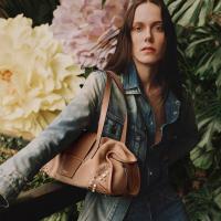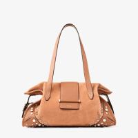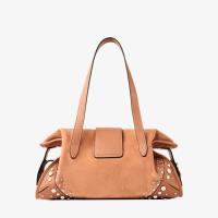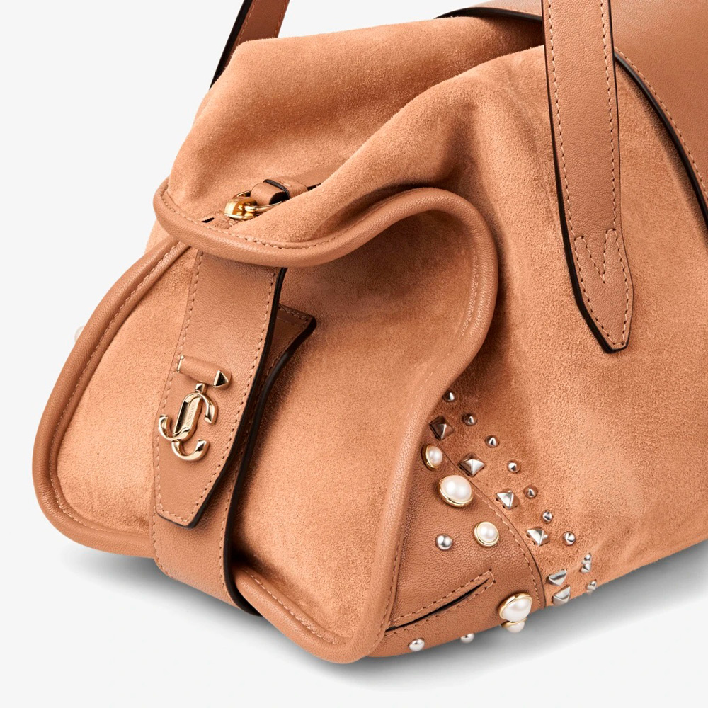 バーバッグファミリーに新しく加わったバー ホールドオールは、トフィースエードとレザートリムを使用し、5種類のパールとメタルスタッズで装飾された収納力の高いキャリーオールバッグ。補強されたコーナーとパイピングが洗練されたシルエットを描き、柔らかな折り目が動きに合わせて広がります。長めのショルダーストラップで快適なハンズフリースタイリングが可能。フロントにはシグネチャーのバー ハードウェア、サイドにはゴールド仕上げのJCロゴをあしらい、内部には必需品を収納できるジップ付きコンパートメントを備えています。