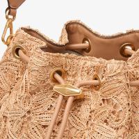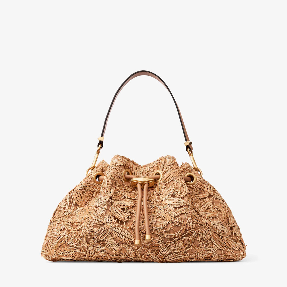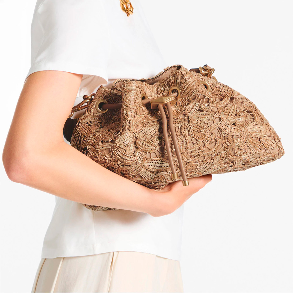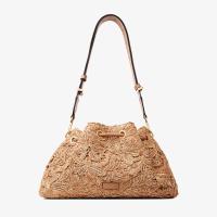 シンチ ミディアム バッグは、ブランドを象徴するソフトでエフォートレスなシルエットが特徴。ファセット加工を施したダイヤモンドモチーフのドローストリングクロージャーで「くびれた」デザインが魅力です。ナチュラルフラワーウーブンラフィアを使用し、個別にカットされたフローラルマクラメラフィアパネルを縫製後、内側に反転させて縫い目を隠し、オープンウィーブの美しさを保っています。スムースレザートリムとゴールドトーンのハードウェアで仕上げています。