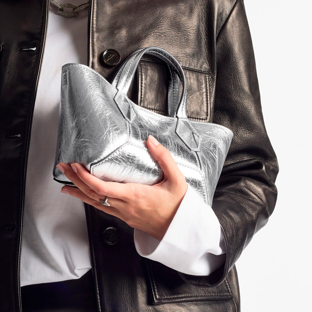 モダンなスタイルで時代を超えて愛される、ダイアモンド トートをご覧ください。ビンテージメタリックレザーを巧みに使用した、ワードローブの定番アイテムです。丁寧に縫い合わされたパネルが個性的なフォルムを生み出し、内部は収納力抜群のデザインに。柔らかなレザーの感触と、軽い仕上がりのトートバッグ。内側のベルトにより大きさとフォルムの調整が可能で、デイリー使いからご旅行まで幅広いシーンで活躍します。