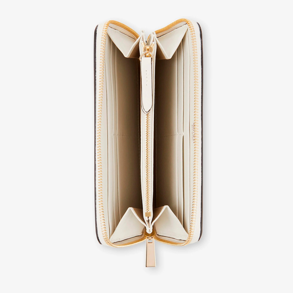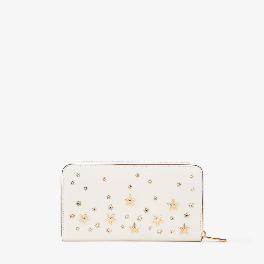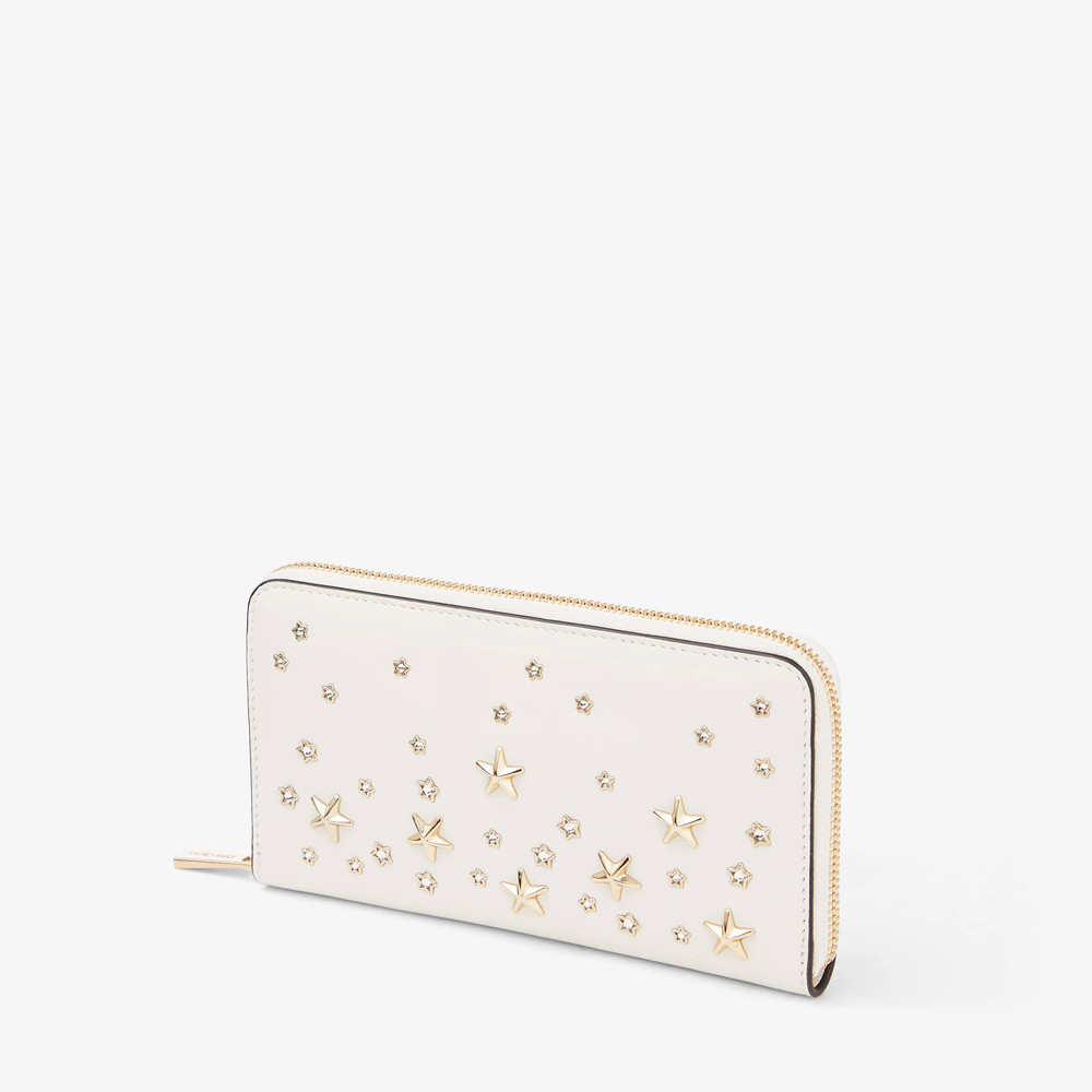 ピッパは毎日使えるタイムレスな長財布。滑らかなカーフレザーを使用し、すっきりとした流線型のフォルムに、メタルとクリスタルのスタースタッズをあしらっています。ファスナーを開けると、よく使うカードや紙幣、小銭を分けてすっきりと収納できます。