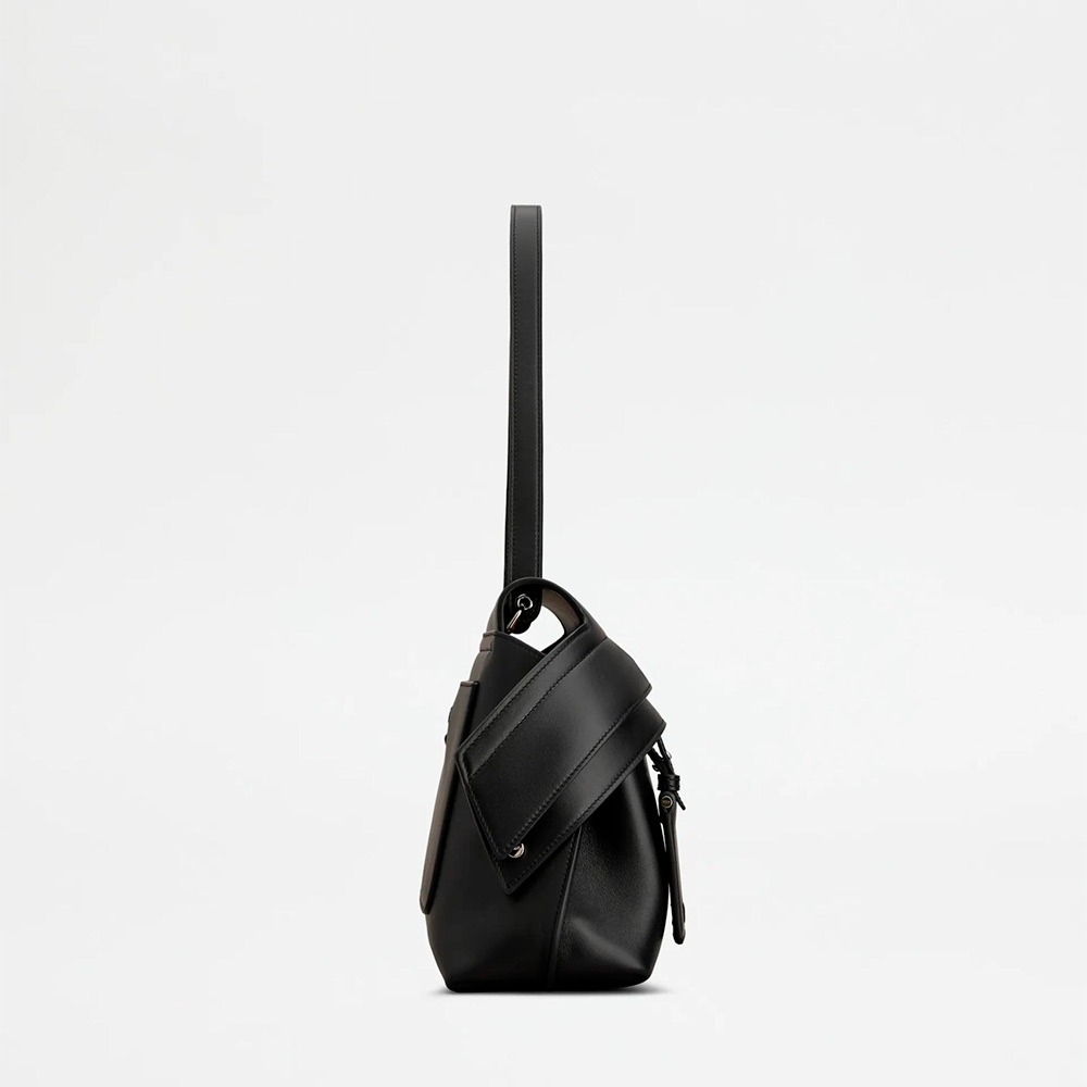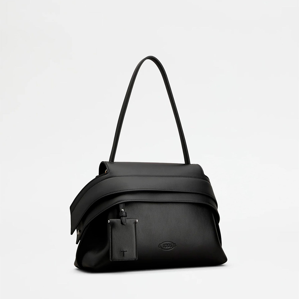 現代的に再解釈されたデザインで表現された、しなやかで気品あふれるシルエットのアイコニックなトッズ ウェーブ バッグ。柔らかなカーフ レザーを用い、フロント ストラップの下に隠された実用的なファスナーはスナップ ボタンで両サイドに留められます。肩に掛けても快適な細めのフラット ハンドル、取り外し可能なミラー、背面にはセンターにトッズ モノグラムの刺しゅうをあしらったポケットを合わせました。