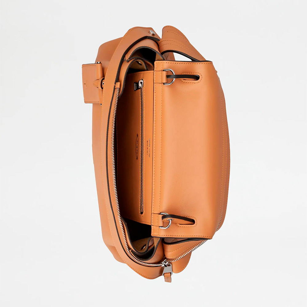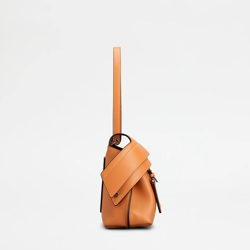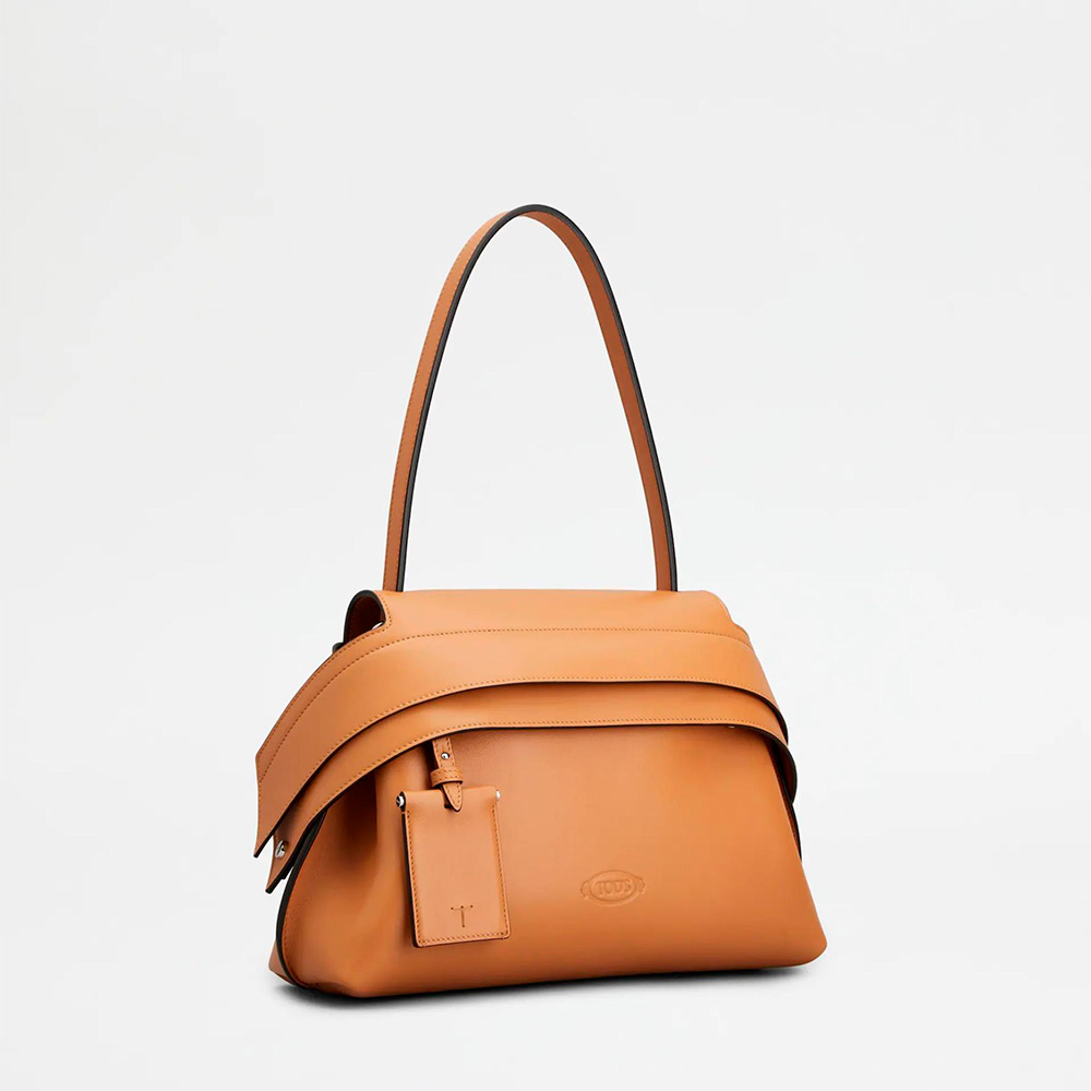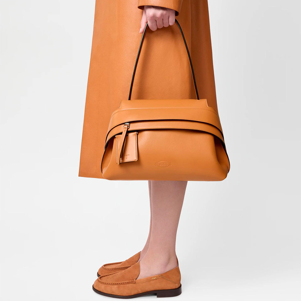 現代的に再解釈されたデザインで表現された、しなやかで気品あふれるシルエットのアイコニックなトッズ ウェーブ バッグ。柔らかなカーフ レザーを用い、フロント ストラップの下に隠された実用的なファスナーはスナップ ボタンで両サイドに留められます。肩に掛けても快適な細めのフラット ハンドル、取り外し可能なミラー、背面にはセンターにトッズ モノグラムの刺しゅうをあしらったポケットを合わせました。