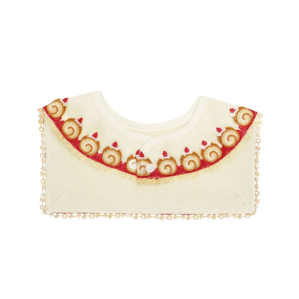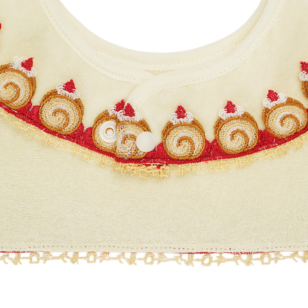 レースがぐるりと付いて近沢レース店ならではの可愛いベビースタイです。