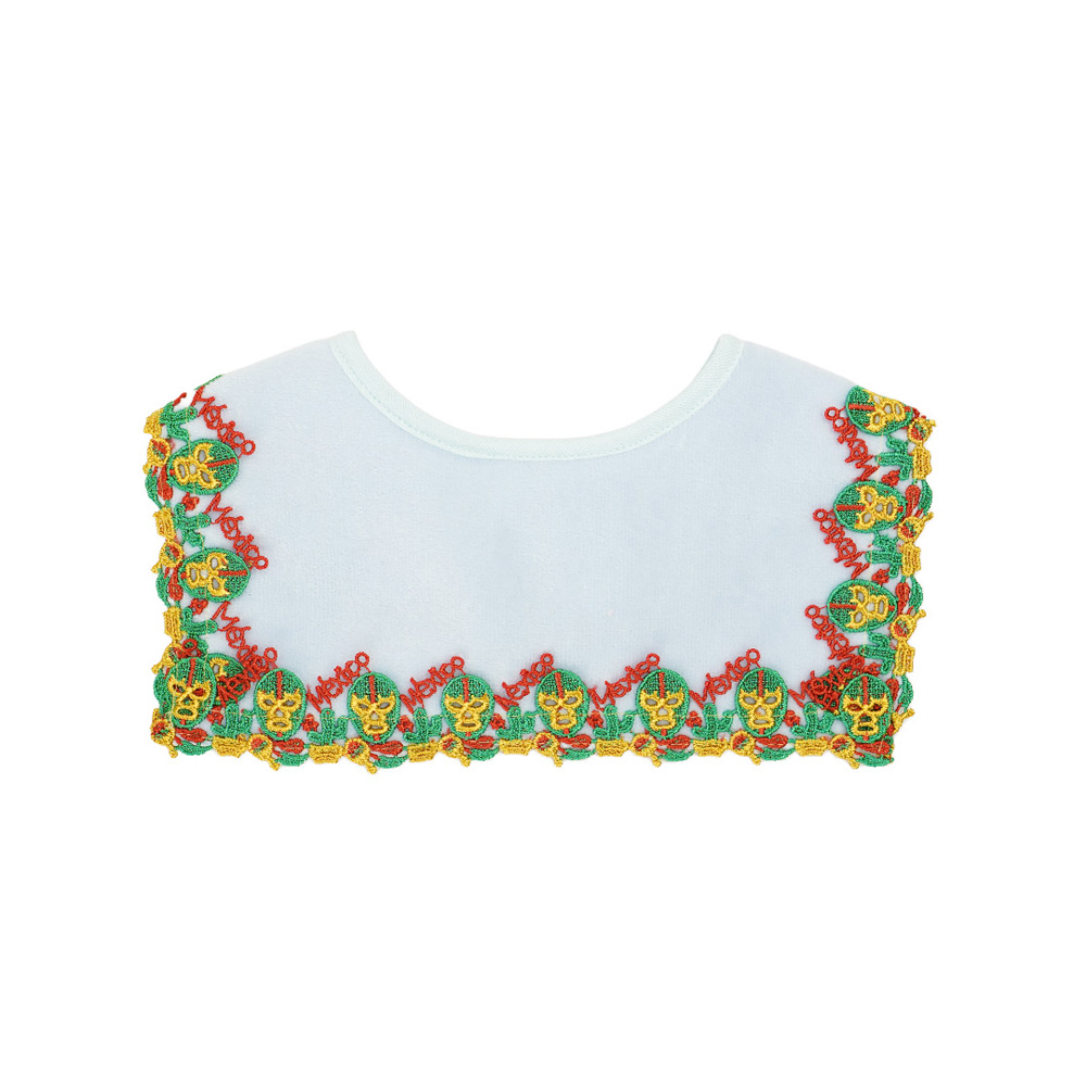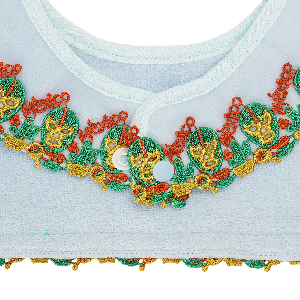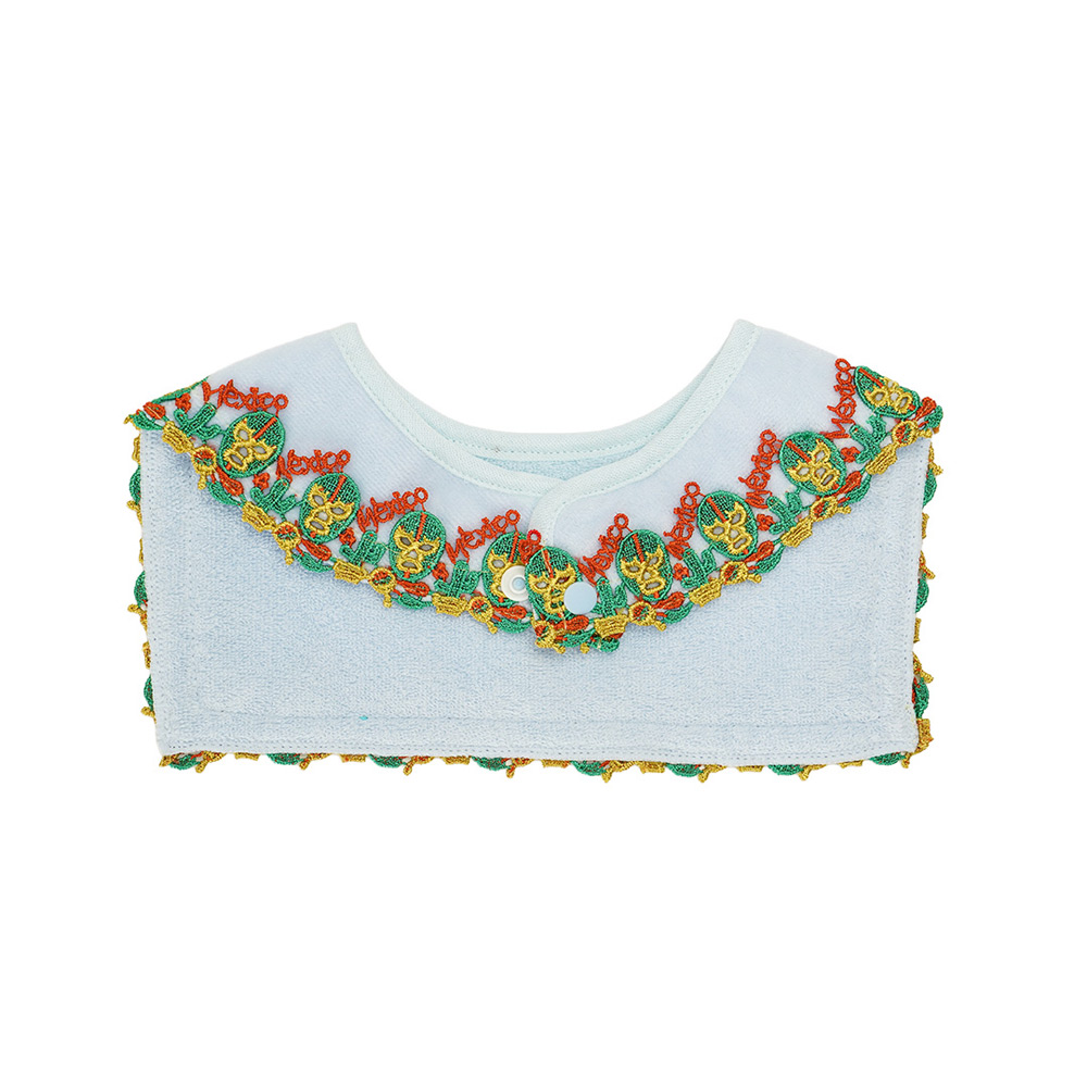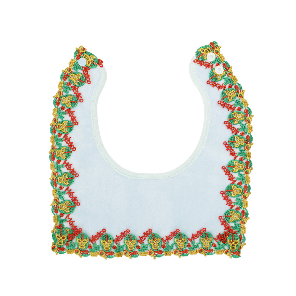 レースがぐるりと付いて近沢レース店ならではの可愛いベビースタイです。