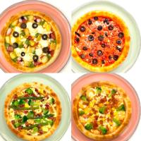 フォカッチャディッシュピザ(直径約20cm):蛸とジャガイモの地中海ピザ・シカゴ風ペパロニリッチ・グリル野菜たっぷりの菜園風ピザ・海老とブロッコリーのアメリケヌソース 各1枚 計4点