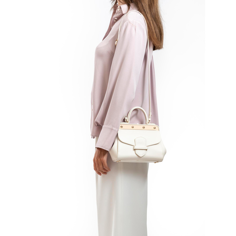 イタリア初代王妃 マルゲリータ・ディ・サヴォイア に捧げる象徴的なバッグ「マルゲリータ」。アーカイブのフランツィのデザインに着想を得た、特徴的な両面構造が特徴です。リベット付きバーや短剣型の留め金といったシグネチャーディテールは、ラグジュアリーなトラベル製品におけるブランドの伝統を継承。丸みを帯びたしなやかなフォルムが、エレガントな佇まいを演出します。素材には、独自の鞣し技法を施したCuoio Franziを使用。耐久性に優れ、長く愛用いただける仕上がりです。さらに、178ものパーツを熟練の職人が一つひとつ組み立てています。調節可能なストラップと3つの異なる開口部を備え、実用性と汎用性も兼ね備えたデザイン。旅からインスピレーションを得た、機能美と個性が際立つ逸品です。※受注商品につき、ご注文後のキャンセル・返品・交換はお受けいたしかねます。