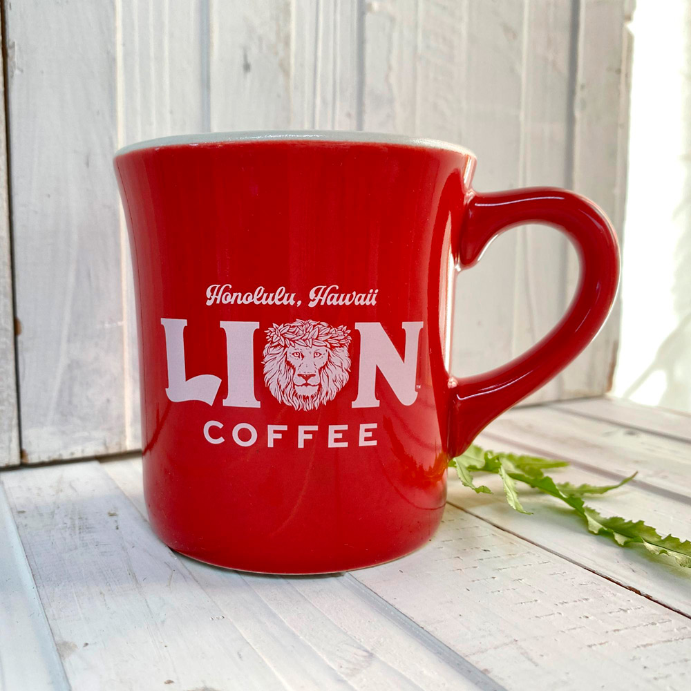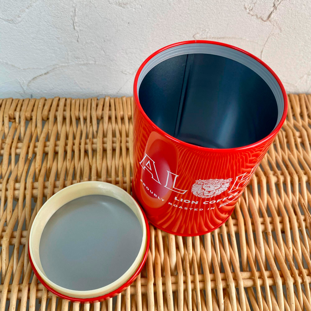 キャニスターは、ライオンコーヒーを一袋入れるのにぴったりなサイズ。シリコンパッキンでしっかり蓋が閉まるため防湿性にすぐれ、コーヒーの鮮度を保ちます。ブランドカラーの赤いマグカップと一緒におうちカフェをお楽しみください。