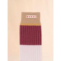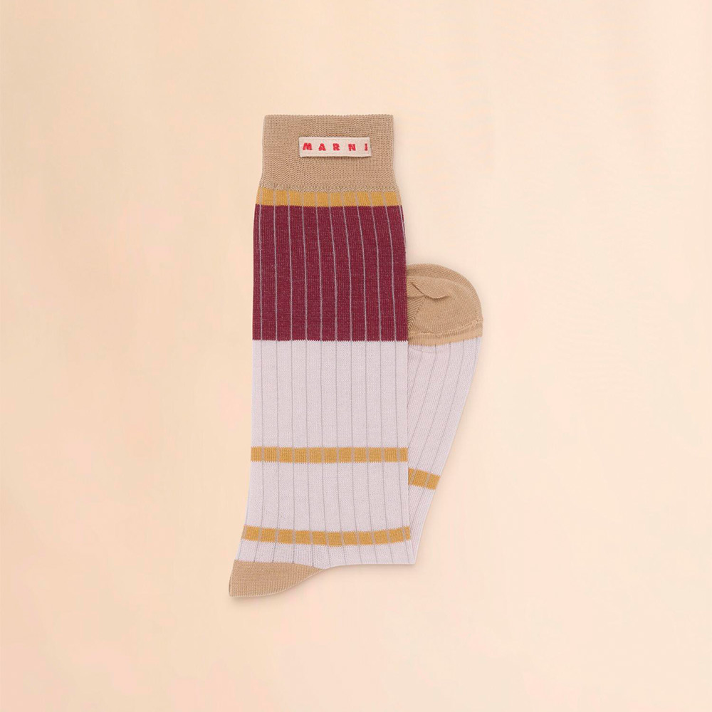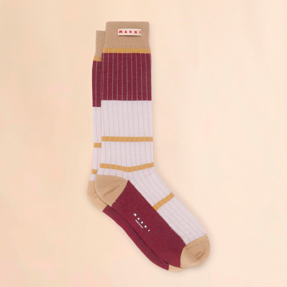 コットン素材のリブ編みマルチカラーボーダーソックス。履き口のリブ部分にロゴ入り。