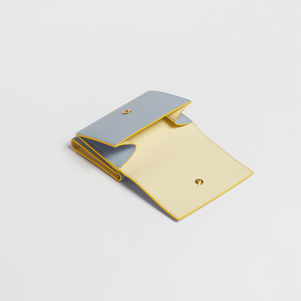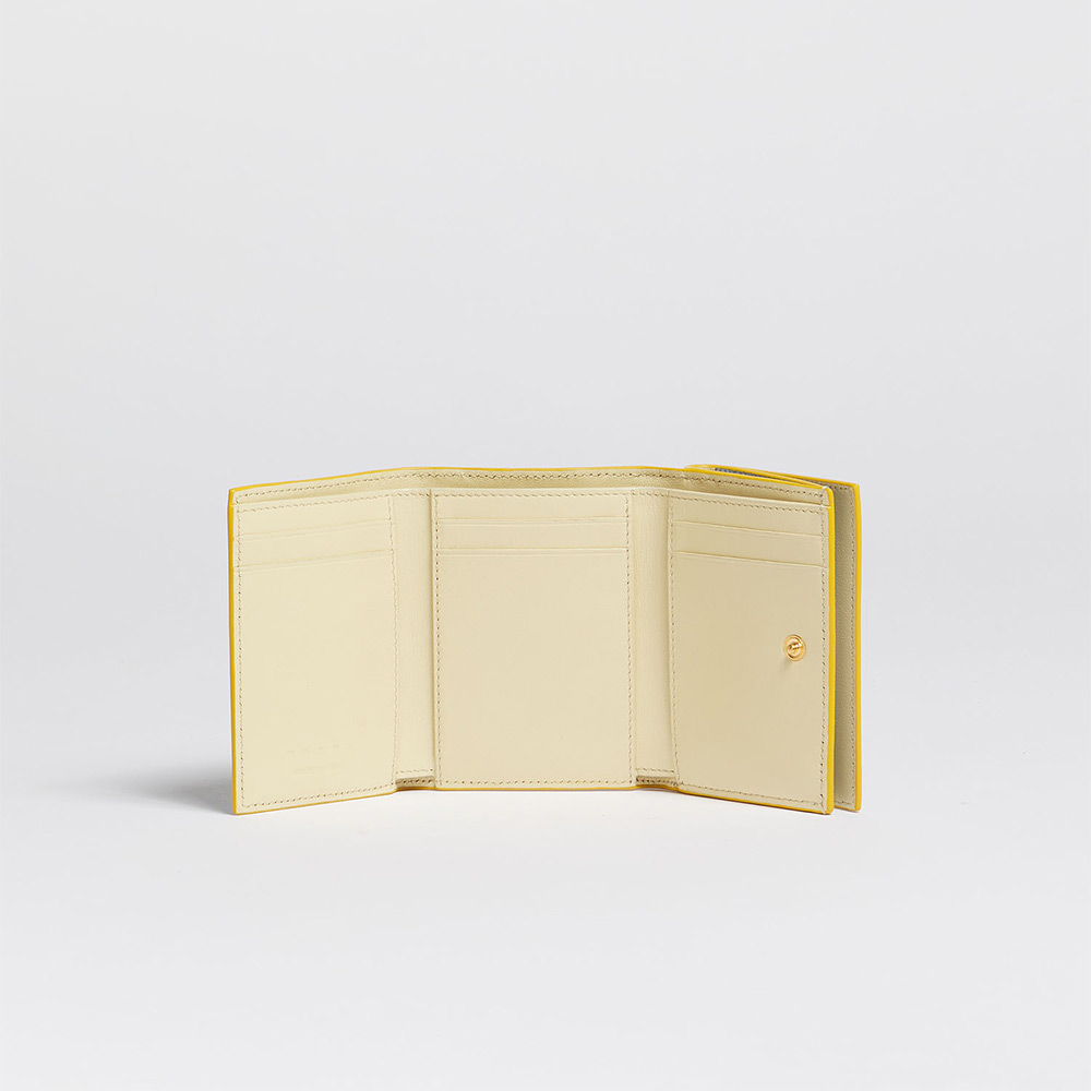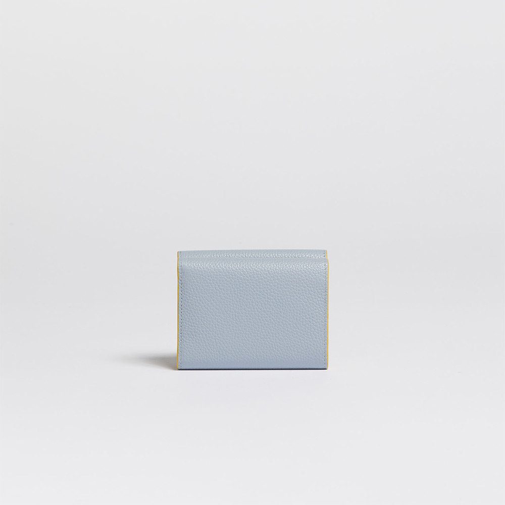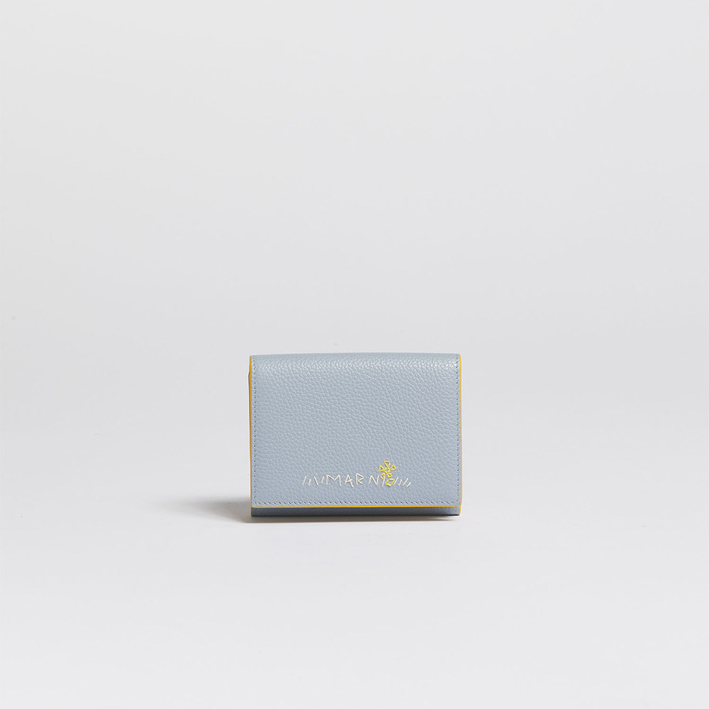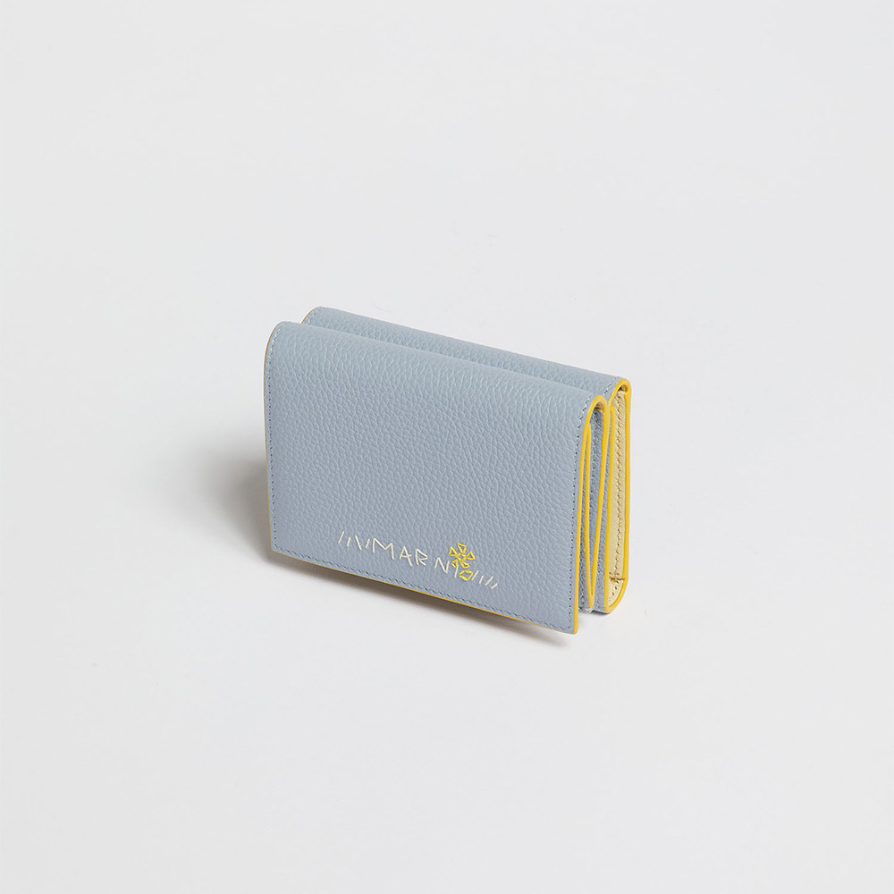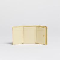 カーフレザー製の”MENDING”3つ折りウォレット。紙幣入れ1つ、カードスロット6つ、スロットポケット3つ、コインポケット1つ。ハンドステッチでほどこされたメンディングロゴはフラワーモチーフが愛らしいアクセントに。