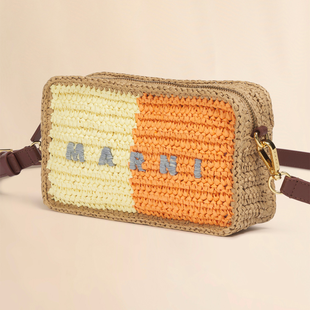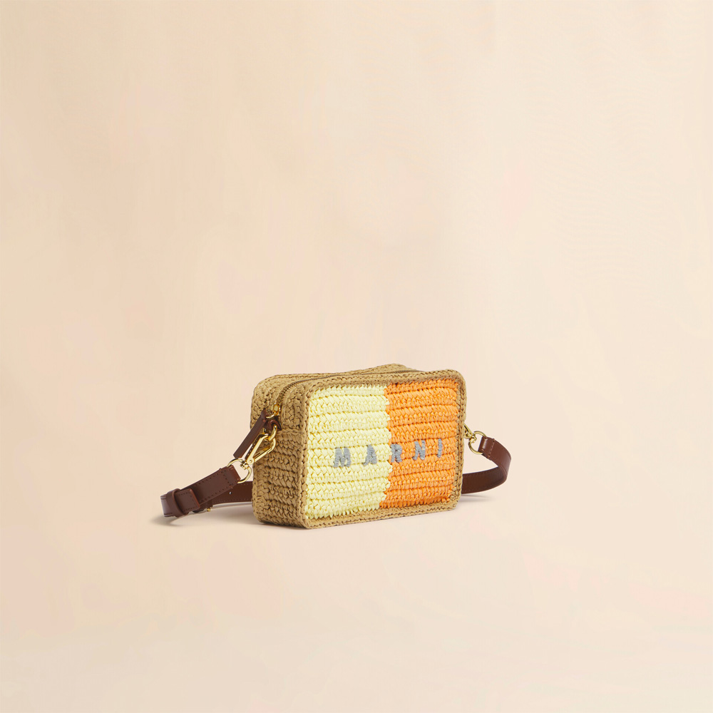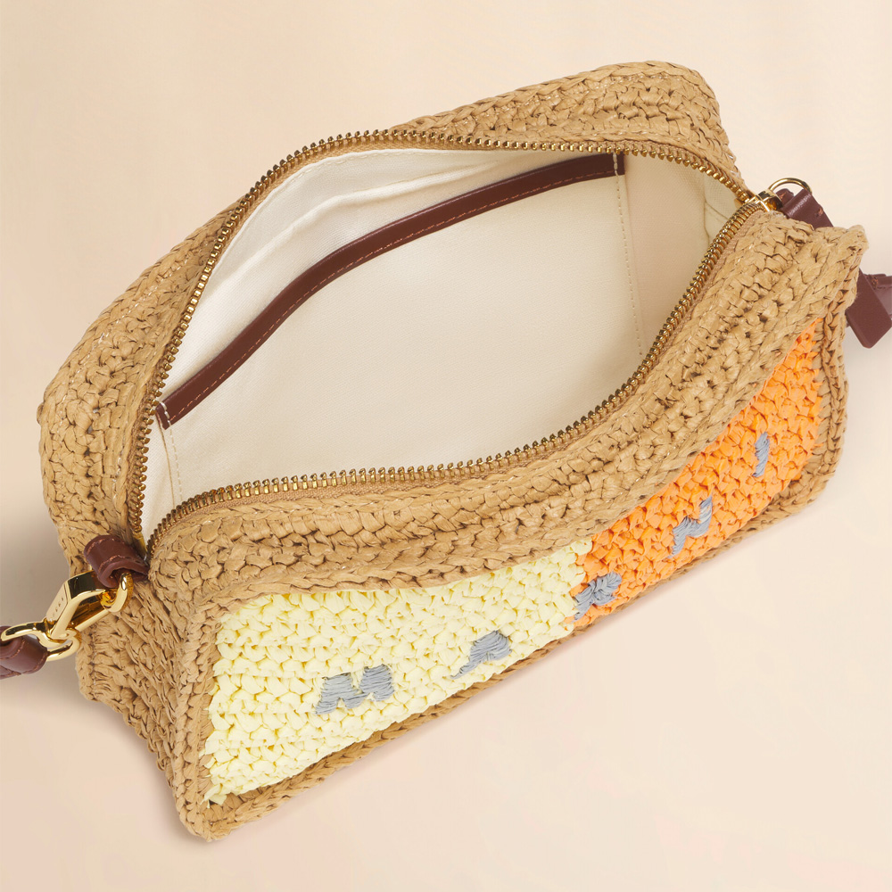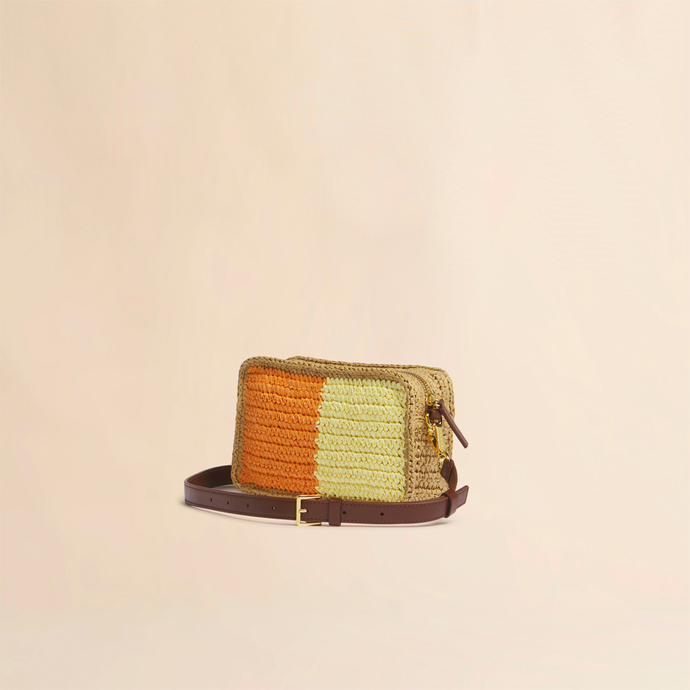 カラフルでエネルギッシュなムードを表現した“SEASIDE”カメラバッグ。本体にペーパーストローを使用し、手作業のため一点一点異なる表情がポイント。ジップクロージャー仕様、調節・取り外し可能なショルダーストラップ、内側にスロットポケット付き。