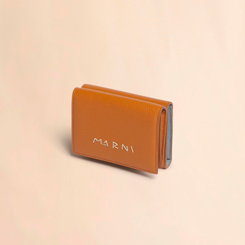 グレインレザー製の”MENDING”3つ折りウォレット。紙幣入れ1つ、カードスロット6つ、コインポケット1つ。フロントにハンドステッチで施されたメンディングロゴがアクセントに。