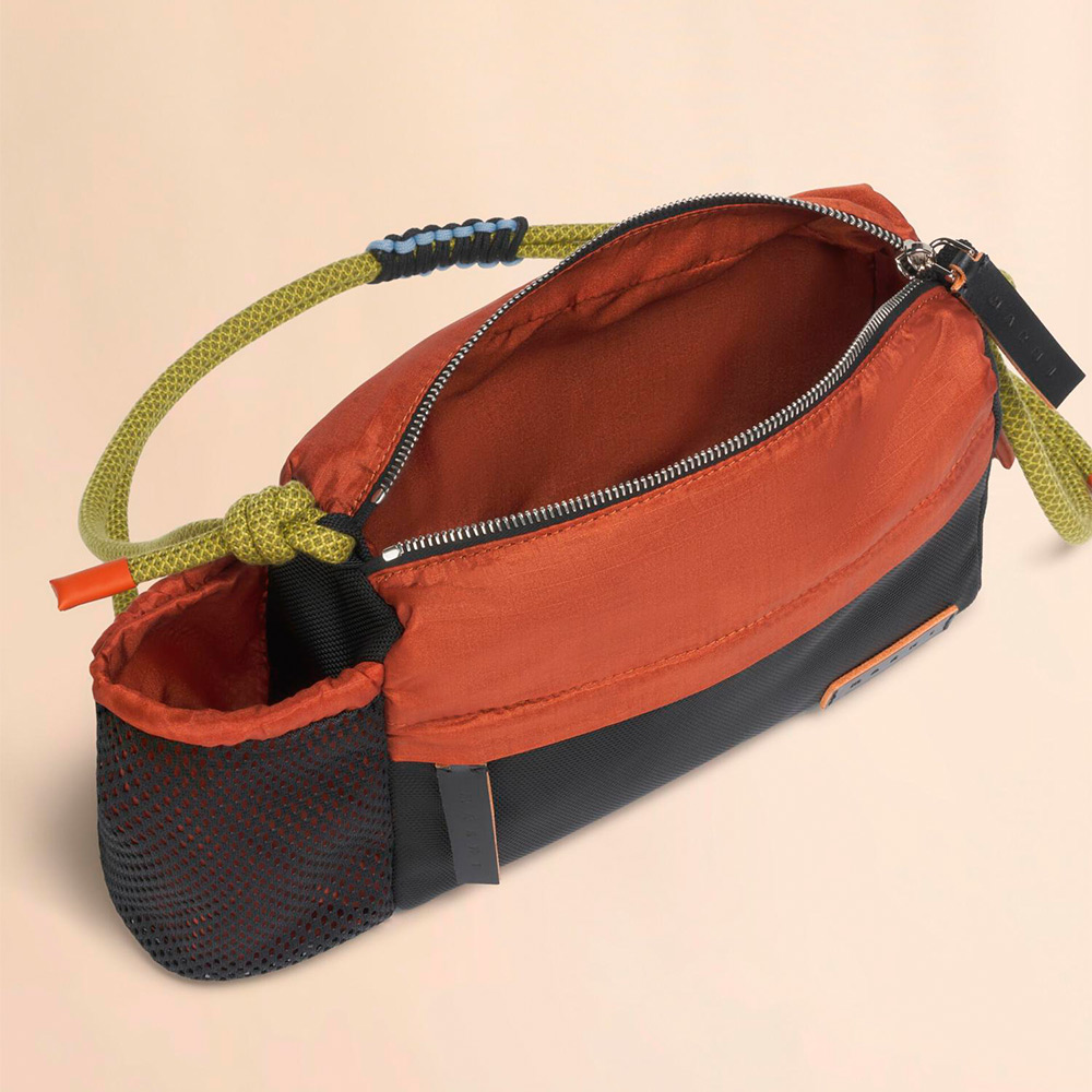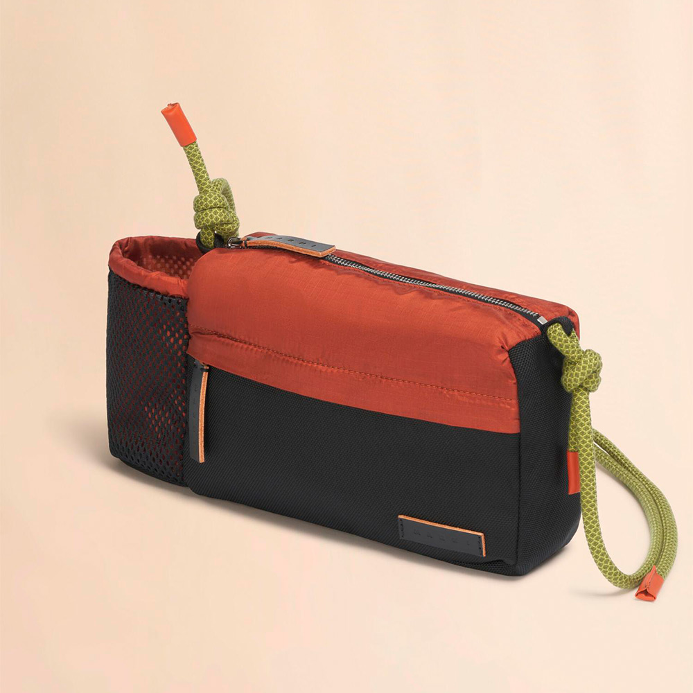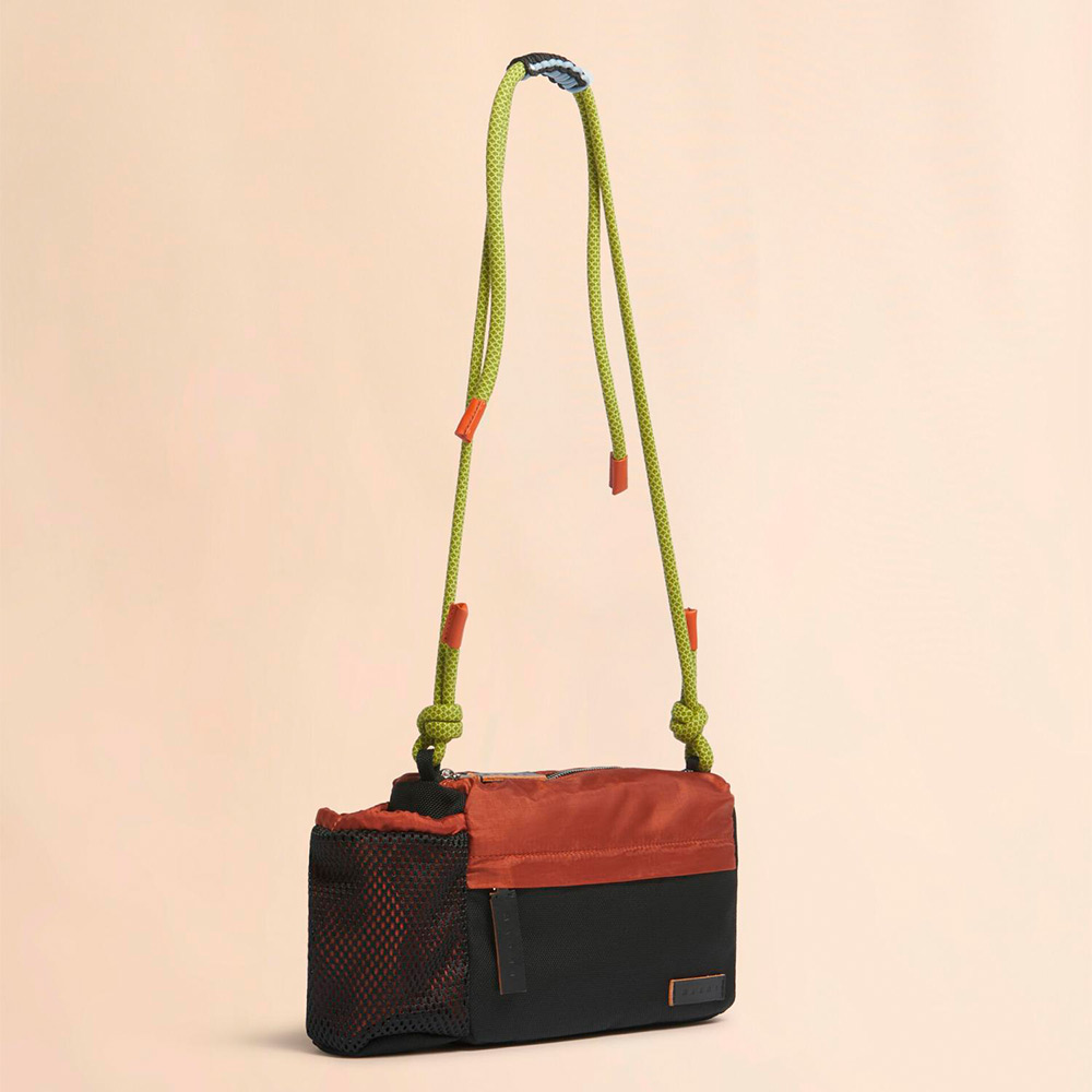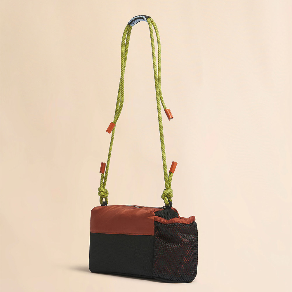 機能的かつ都会的なデザインが特徴の“MODULUS”クロスボディバッグ。軽量なリップストップナイロン素材とメッシュを組み合わせ、耐久性と軽さを両立。調節可能なコードストラップや手作業で仕上げた編み紐ディテール、多用途に使えるジップポケットを備え、レザー製のロゴプレートがアクセントに。