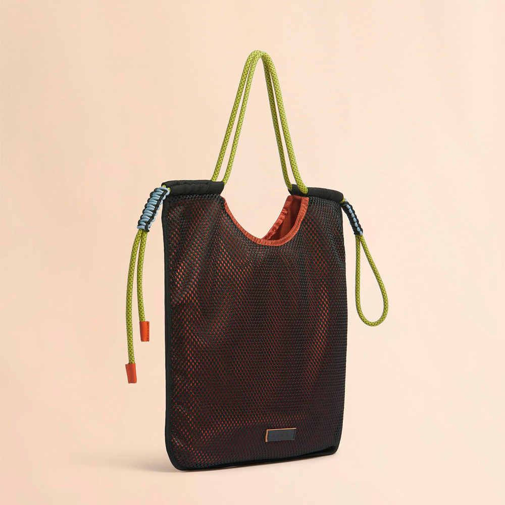 機能的かつ都会的なデザインが特徴の“MODULUS”トートバッグ。軽量なリップストップナイロン素材とメッシュを組み合わせ、耐久性と軽さを両立。調節可能なコードストラップや手作業で仕上げた編み紐ディテール、13インチのパソコンを収納可能。レザー製のロゴプレートがアクセントに。