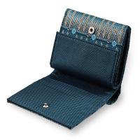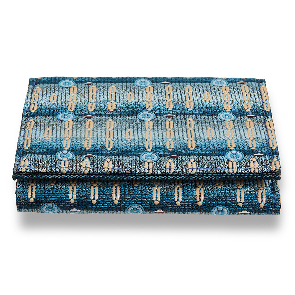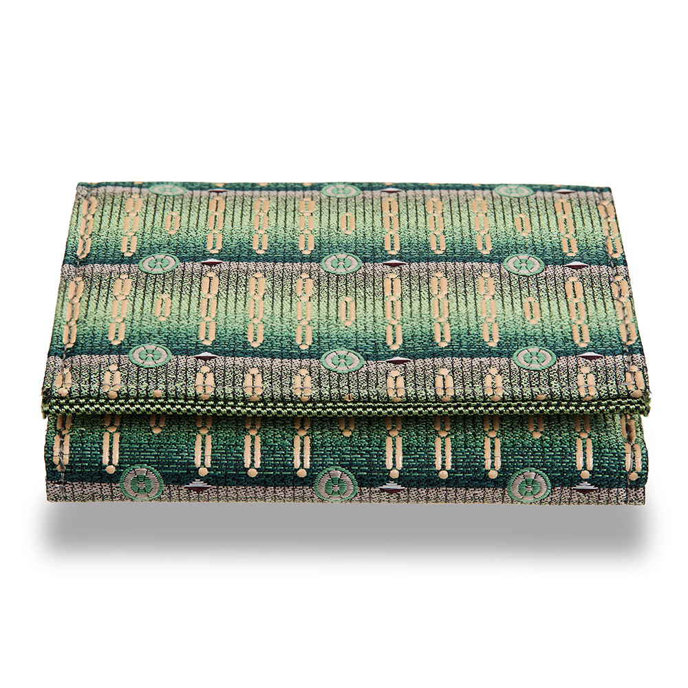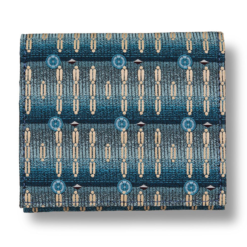 西陣織に印伝技法で漆を施したハーフウォレット。触れるたびに伝わる質感と美しさが、日々の暮らしに確かな彩りをもたらします。