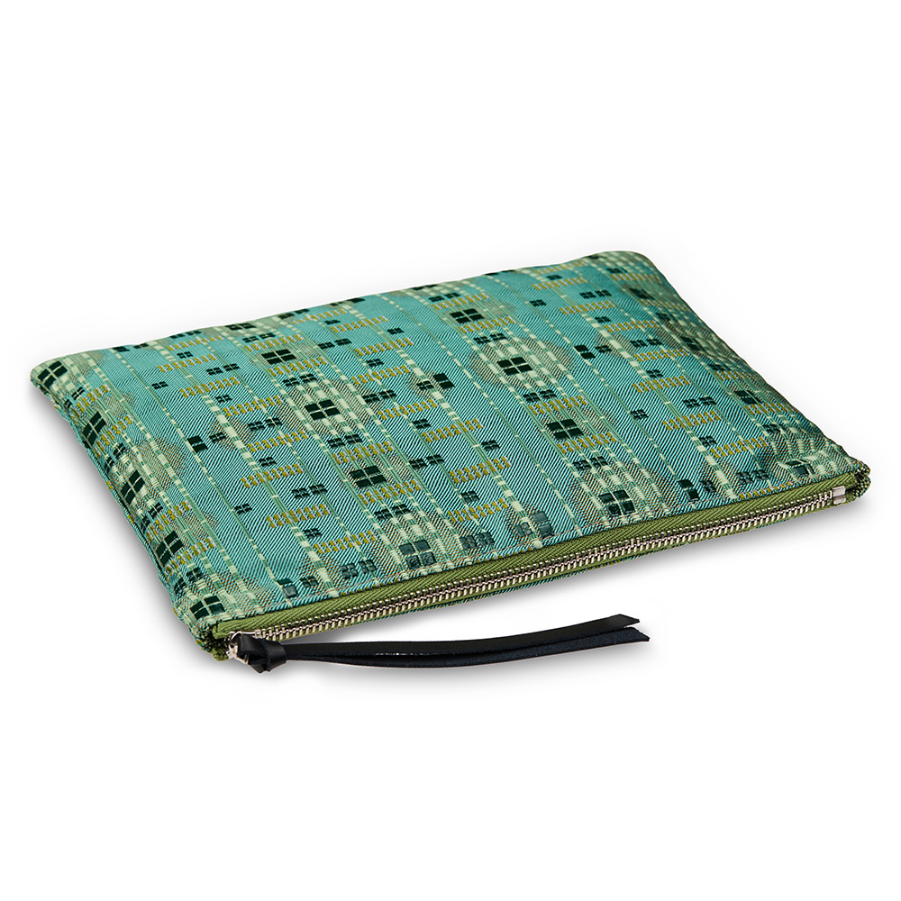 「明日うまれる、日本の伝統」を掲げるYASIMA。この商品は京都の西陣織に印伝技法で漆を施した独自素材と牛革のタッセルをアクセントにしたポーチです。収納力のある設計により、手帳やステーショナリー、日々の装いを整える大切な小物を収めるオーガナイザー、あるいはクラッチバッグとして日常のあらゆるシーンに馴染みます。最大の特徴は、絹糸の繊細な光沢と漆の艶やかな立体感が生み出すコントラスト。表面だけでなく内装まで西陣織100%で仕立てた高級で贅沢な仕様です。国内の専門工場が洗練された仕上がりを実現しました。漆特有のしっとり感は、触れるたびに五感で楽しむことのできるアートのような仕上がりになっています。
