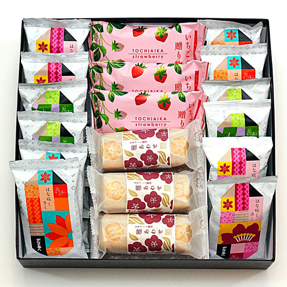 はな咲くさく 12袋、雅あわせ 3個、いちごの贈りもの 3個