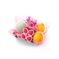 メロン・いちご・柑橘に花を詰め合わせた華やかなフルーツギフトです。