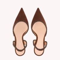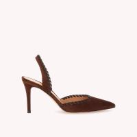 スエード地から丹念に作り上げたソングサンダルのZaira Sling。高さ85mmのスティレットヒールを備えています。モロッコの編み物の技法を用いて柔らかなレザーを丁寧に編み込んだデザインに、メゾンならではの巧みな職人技が光ります。約1時間の作業を経て、この個性的な柄を描き出しています。手作業によって仕上げました。