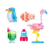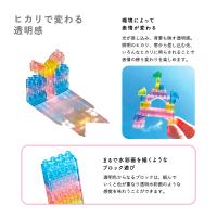 透明感のあるブロックは、組んでいくと色が重なり、透明水彩画の混色のような感覚を味わうことができます。また、いろいろなヒカリに照らされることで、表情の移り変わりを楽しめます。※こちらの商品の売上金の一部は、こども食堂支援に充てられます。