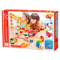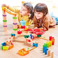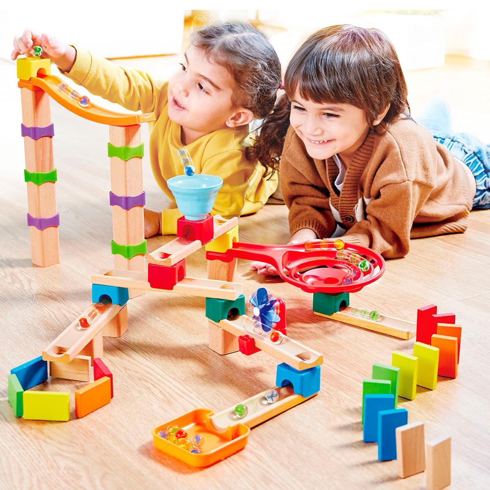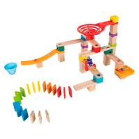 パーツの組み合わせで自由にコースを作れる木製のボール転がしセット