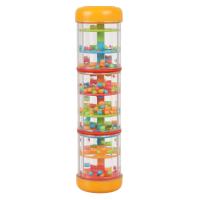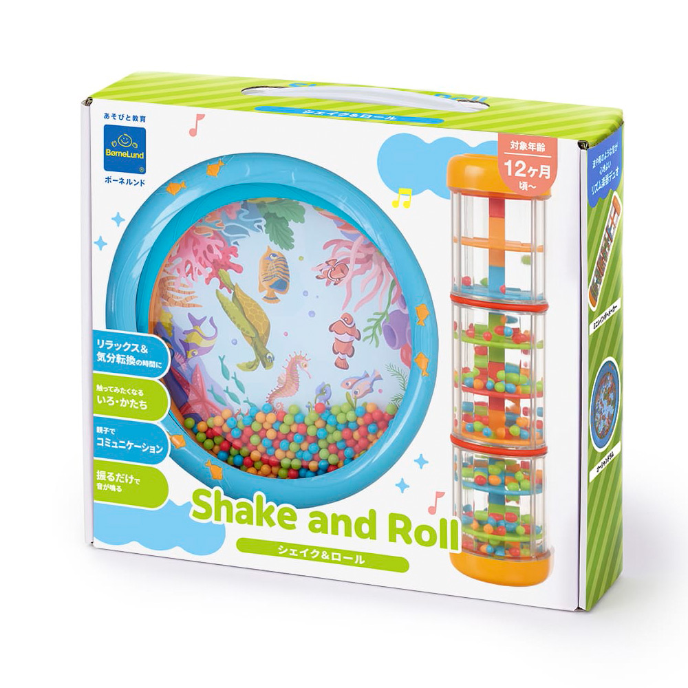 <ミニレインボーメーカー>無数のビーズは雨のような心地よい音。胎内で聞こえていたママの血流の音に似ていて、安心できる音色です。大人が上下を返せば、目と耳でビーズの動きを音を楽しめます。転がすと追いかけたくなりハイハイのきっかけに。手で持てば振ってリズムを奏でたくなります。<オーシャンドラム>大きく平らな太鼓に豆や砂・小石などを入れた、舞台音楽用のパーカッションが原型。不規則で自然な波のような音色です。大人がゆっくり動かすと波の音が聞こえてきます。バンバン叩くのが楽しい時期には、床やひざに置いて太鼓のように使えます。タンバリンのように振って鳴らせば元気なリズムに。