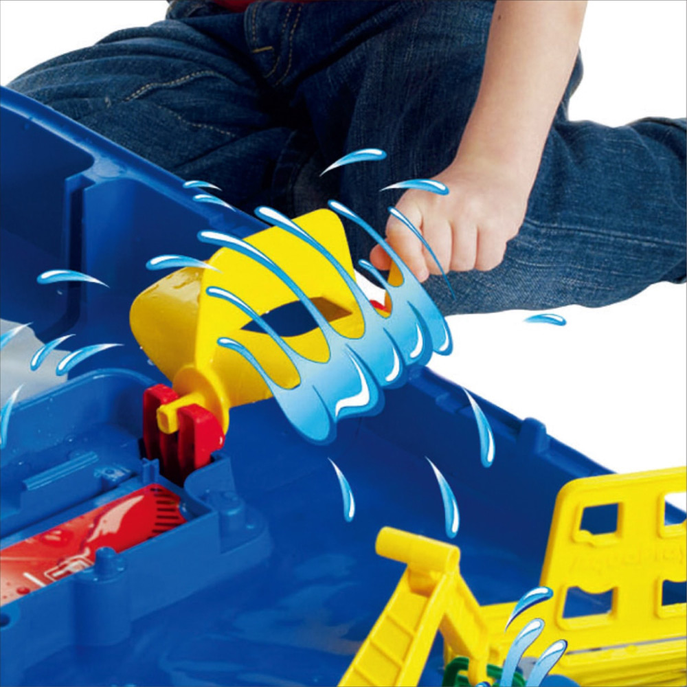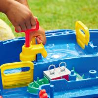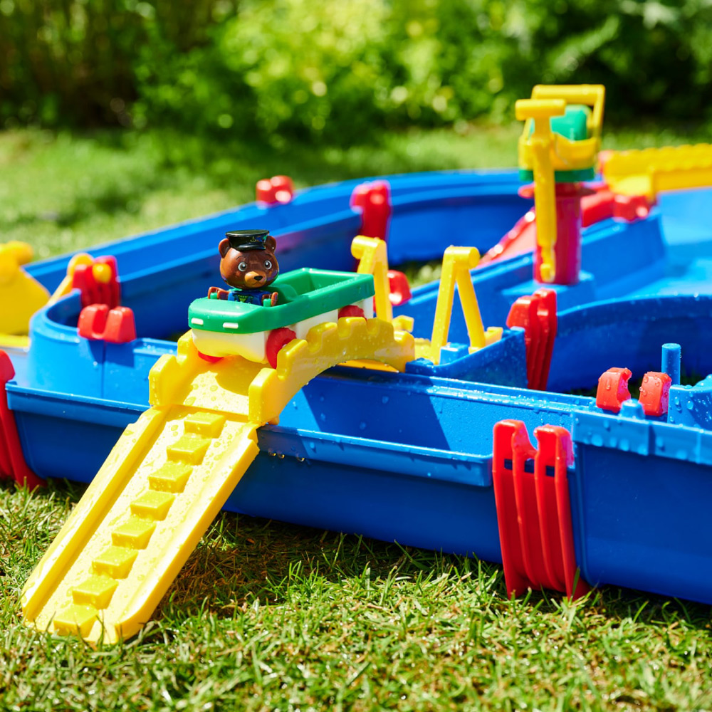 運河のしかけが満載のセット。遊ぶ場所や人数に応じてコースの組みかえが自在にでき、水をくみ上げる、クレーンを動かすなど、役割分担をしながら複数人で遊ぶのにもおすすめです。「物が水に浮かぶ」「水の流れをつくる」「水の力で物を動かす」など、あそびを通して水の性質や運河のしくみを体験でき、年齢の異なる子どもたちで一緒に遊べ、役割意識やみんなで協力する力も育まれます。 これさえあれば、夏の暑い日も海・川、プールに行かなくても手軽に水に触れて涼むことができます。また、深さもそこまでないので、小さなお子さまから水遊びが楽しめます。