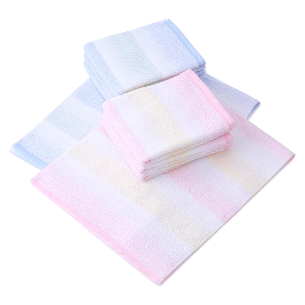 和泉山脈の豊富な水源に支えられ、伝統の後晒製法により仕上げられるタオルは、独特の心地よい風合いとおろしたてからの高い吸水性が特徴です。凹凸のある織り方で仕上がったレインボーフェイスタオルは吸水性に優れ、洗面所やお風呂、キッチンと様々なシーンでお使いいただけます。