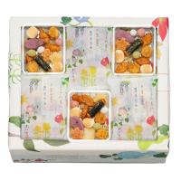 四季の移ろいと人の心を繊細に、かつ鮮やかに描いた俳人「与謝蕪村」。「五・七・五」の三句十七音に感動を託す俳句のように、五感に響く、とりどりのお菓子です。花鳥風月に象徴される四季折々の姿をカタチに写し、多彩なお味が楽しめる吹季寄せです。多彩なあられを1つの袋に詰めました。22袋入った箱入りの商品です。