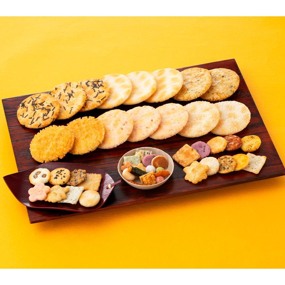 「蕪村あられ春秋」をはじめ定番のおせんべいを詰め合わせました。