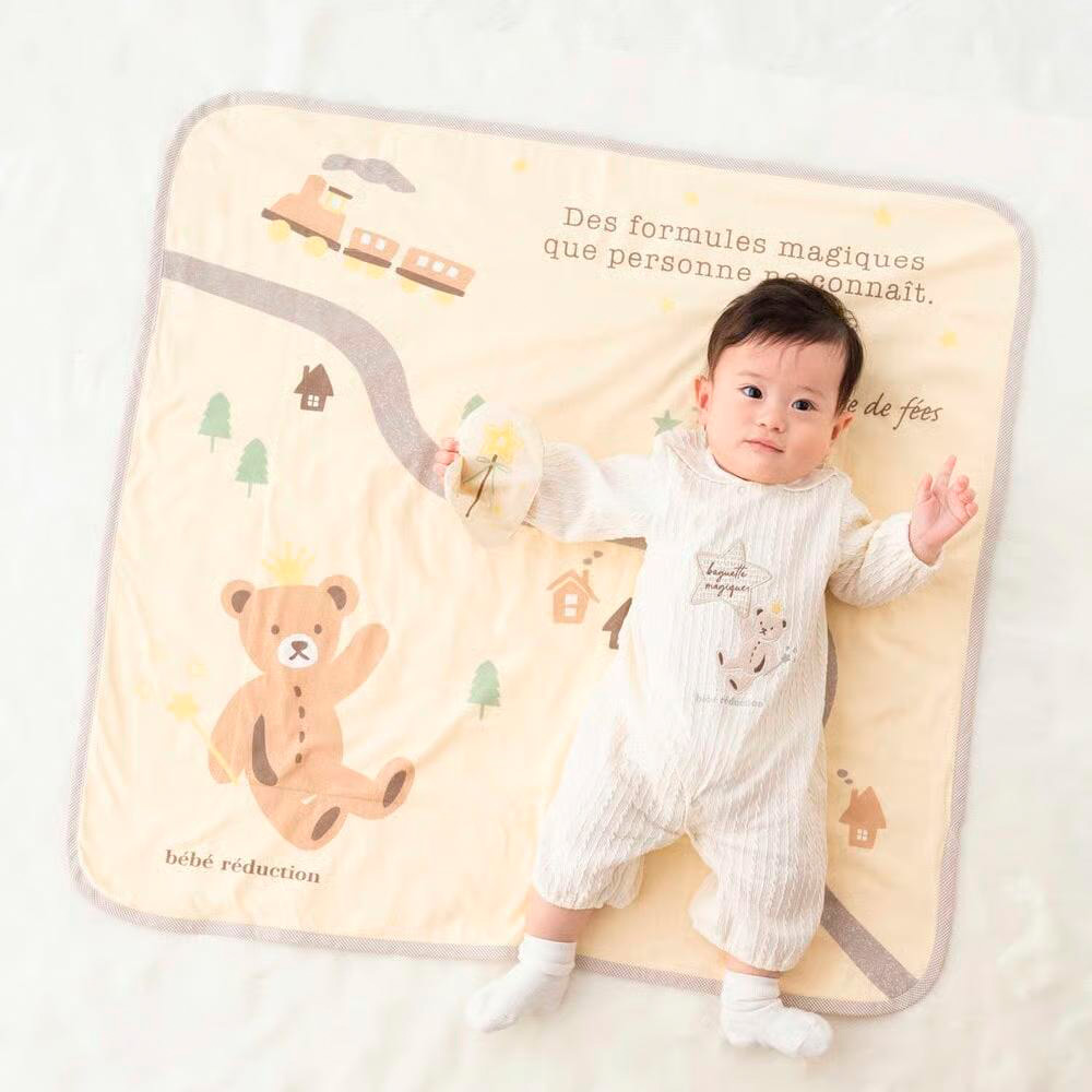 くまのルウちゃんプリントおくるみ&カシャカシャギフトセット(ギフトボックス付)
