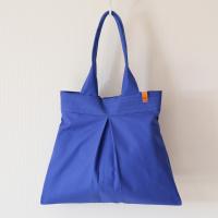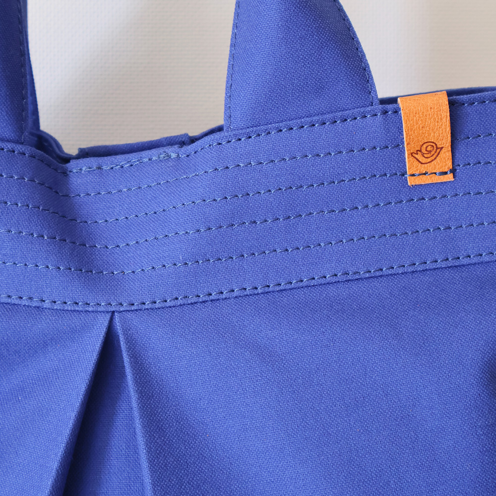 琵琶湖をイメージした深みのある紺色が印象的な一品で、国内で一点ずつ丁寧に仕立てています。本体には琵琶湖のさざなみの様なプリーツを施し、やわらかい印象に仕上げました。持ち手は肩掛け・手持ちどちらにも使いやすい長さになっており、裏地にも帆布を使用することで丈夫さを保ちながらも軽やかで、負担を感じにくい仕様となっております。