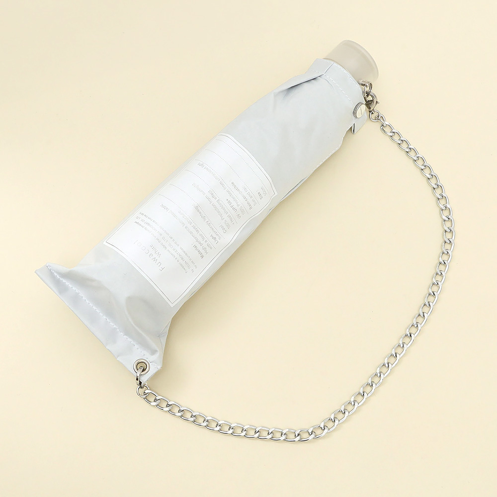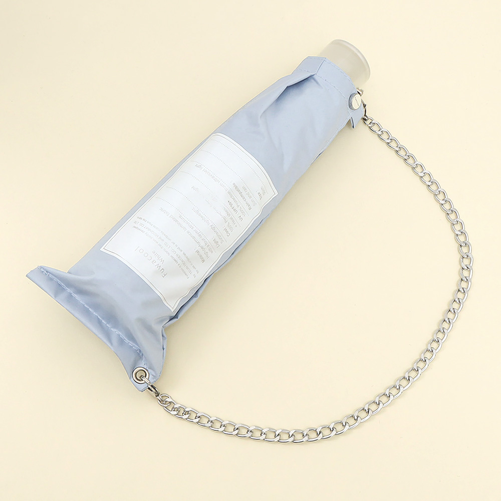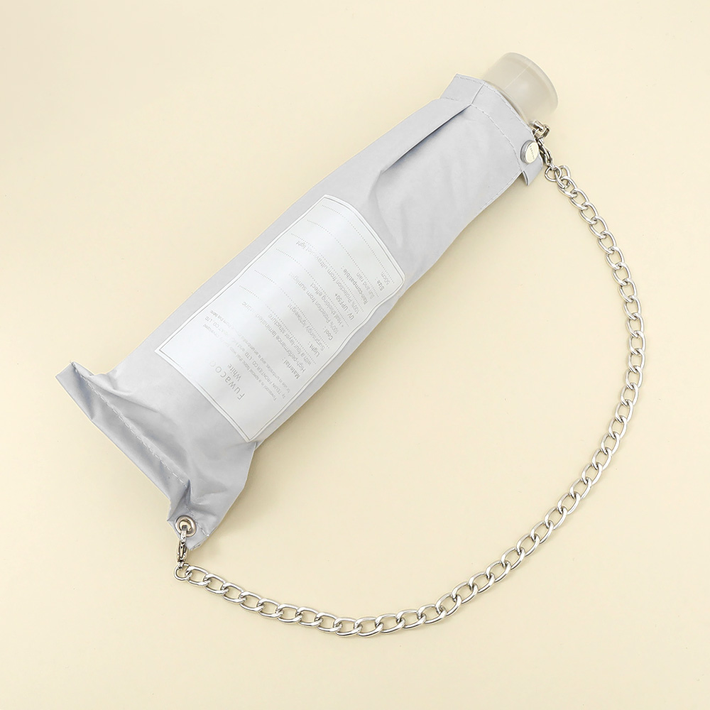 淡い色味と傘袋についたチェーンが特徴的な折りたたみ傘