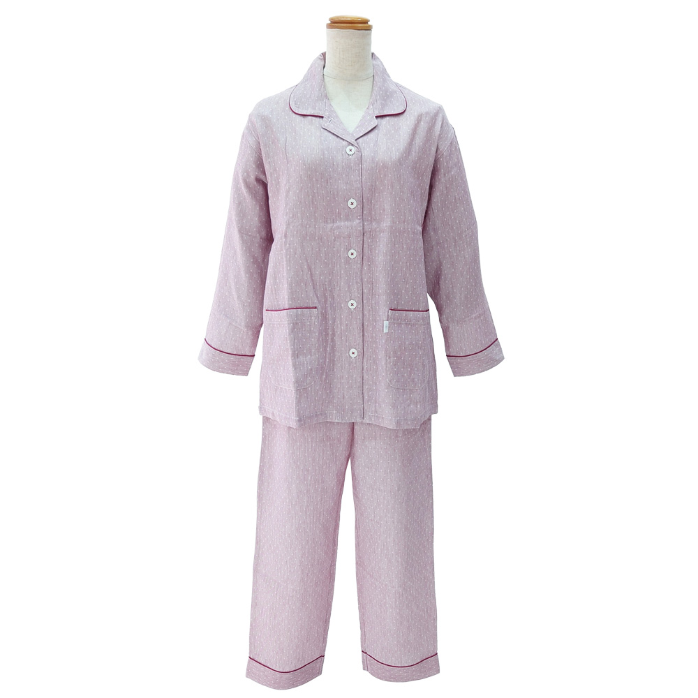 <nacrure>婦人長袖パジャマ Wガーゼ ジャカードスクエア (PK)