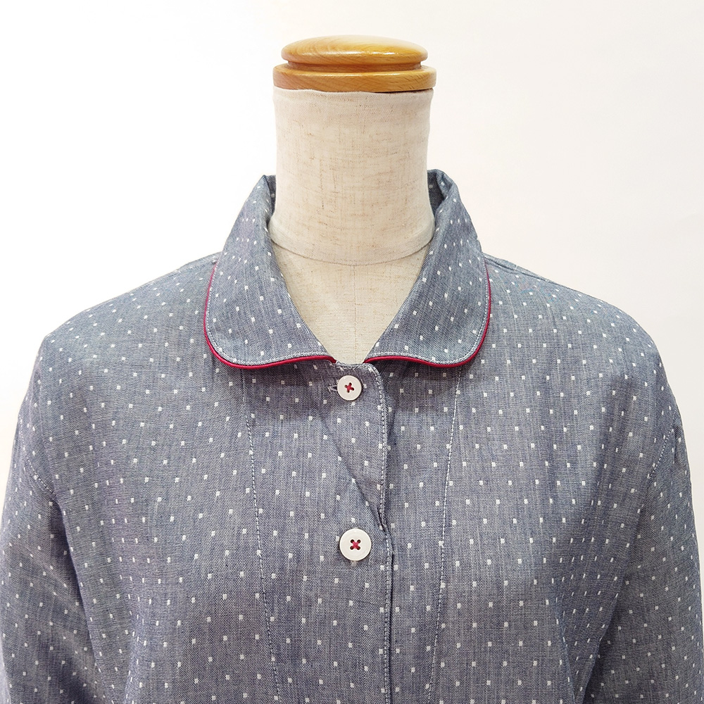 やさしい肌触りのベーシックなガーゼパジャマ。長袖(前開きタイプ)長丈パンツ。